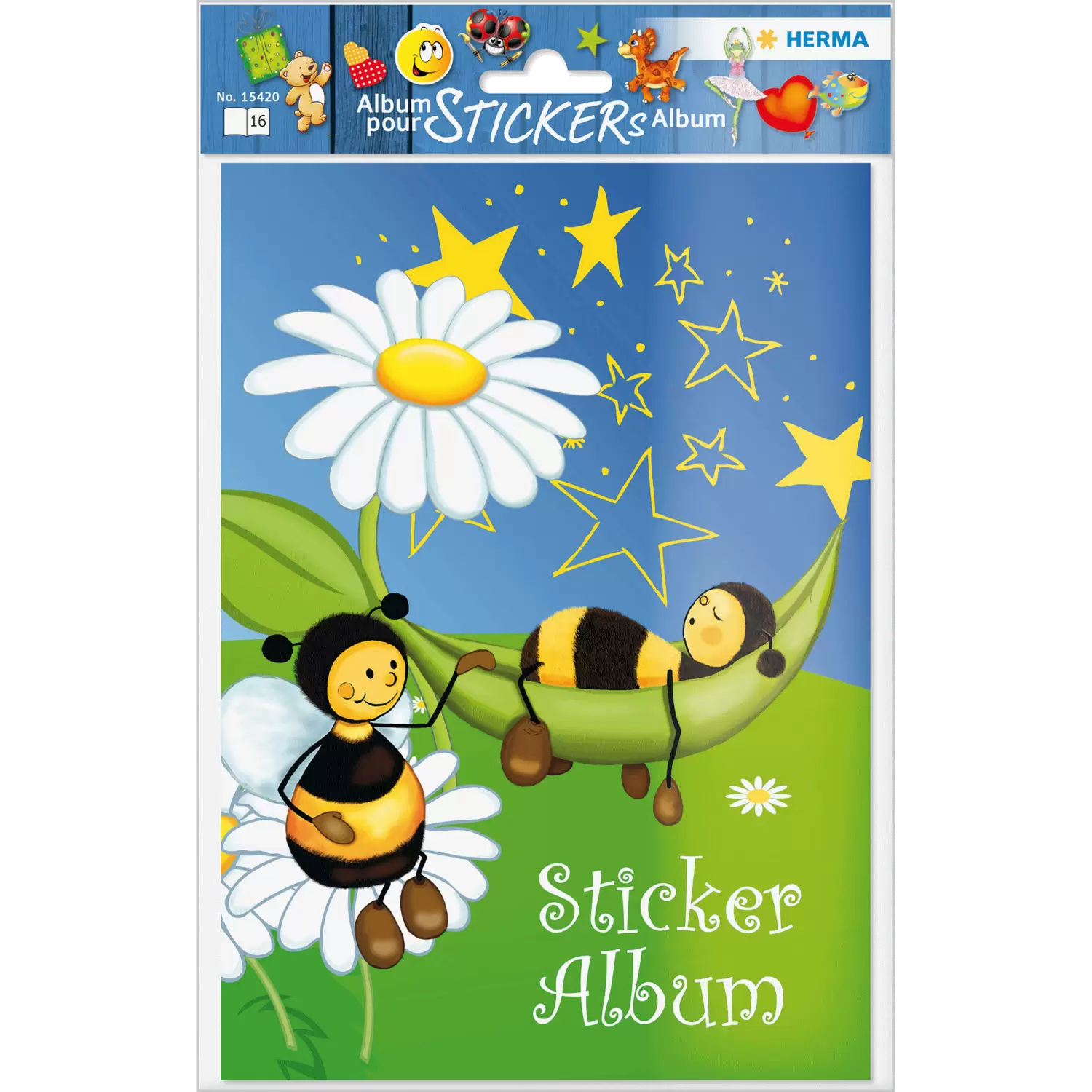 - Album d'autocollants avec une jolie page de couverture en motif Le pré des abeilles