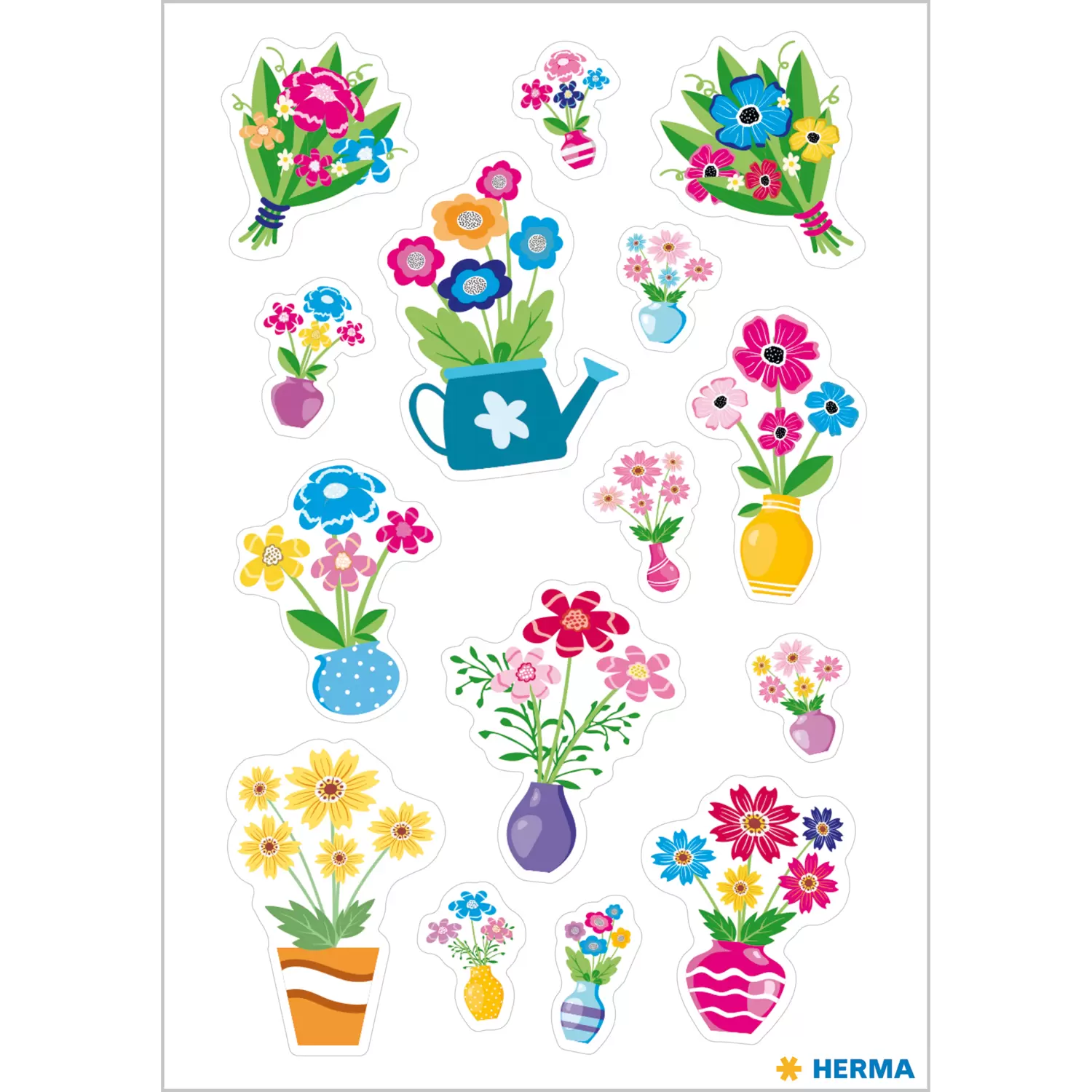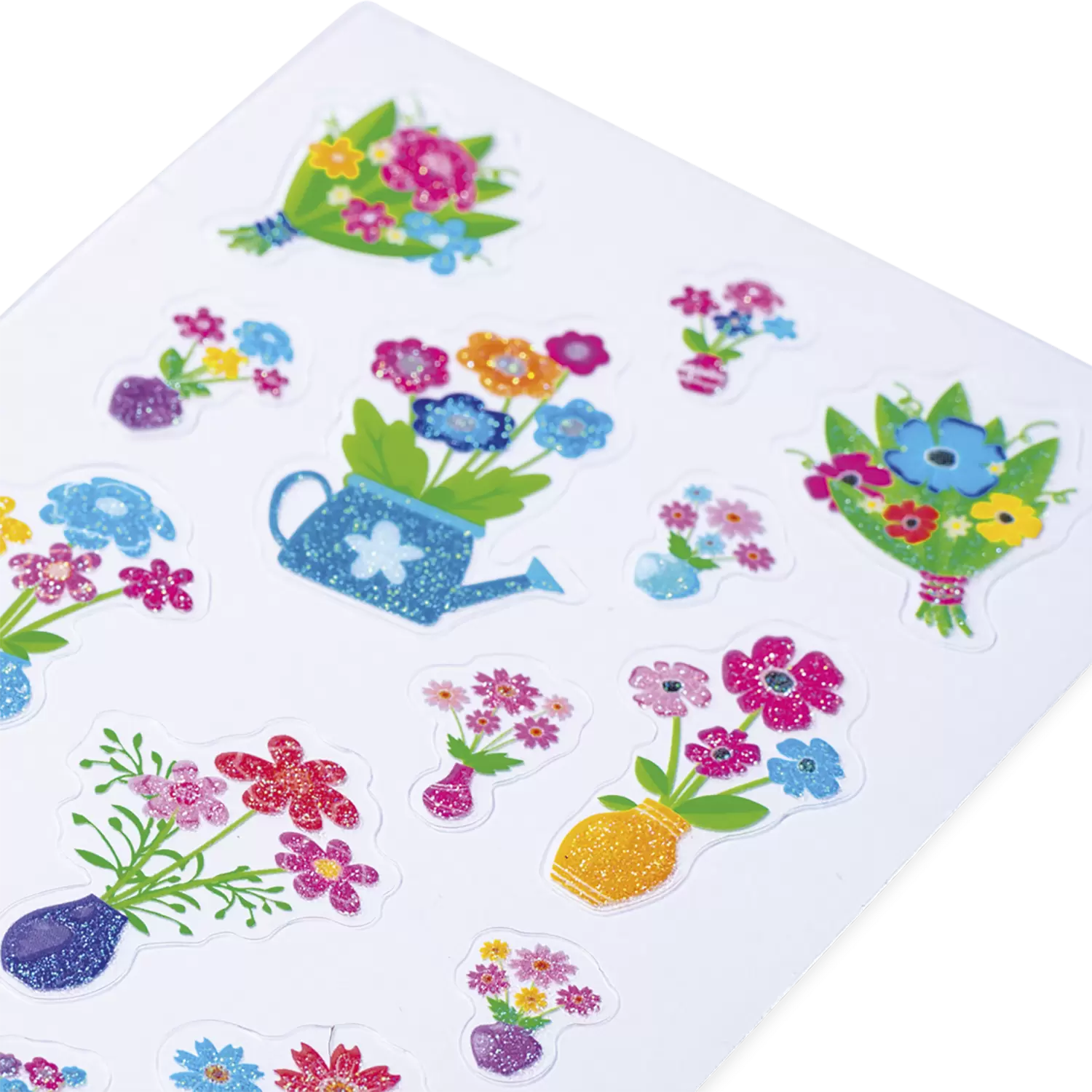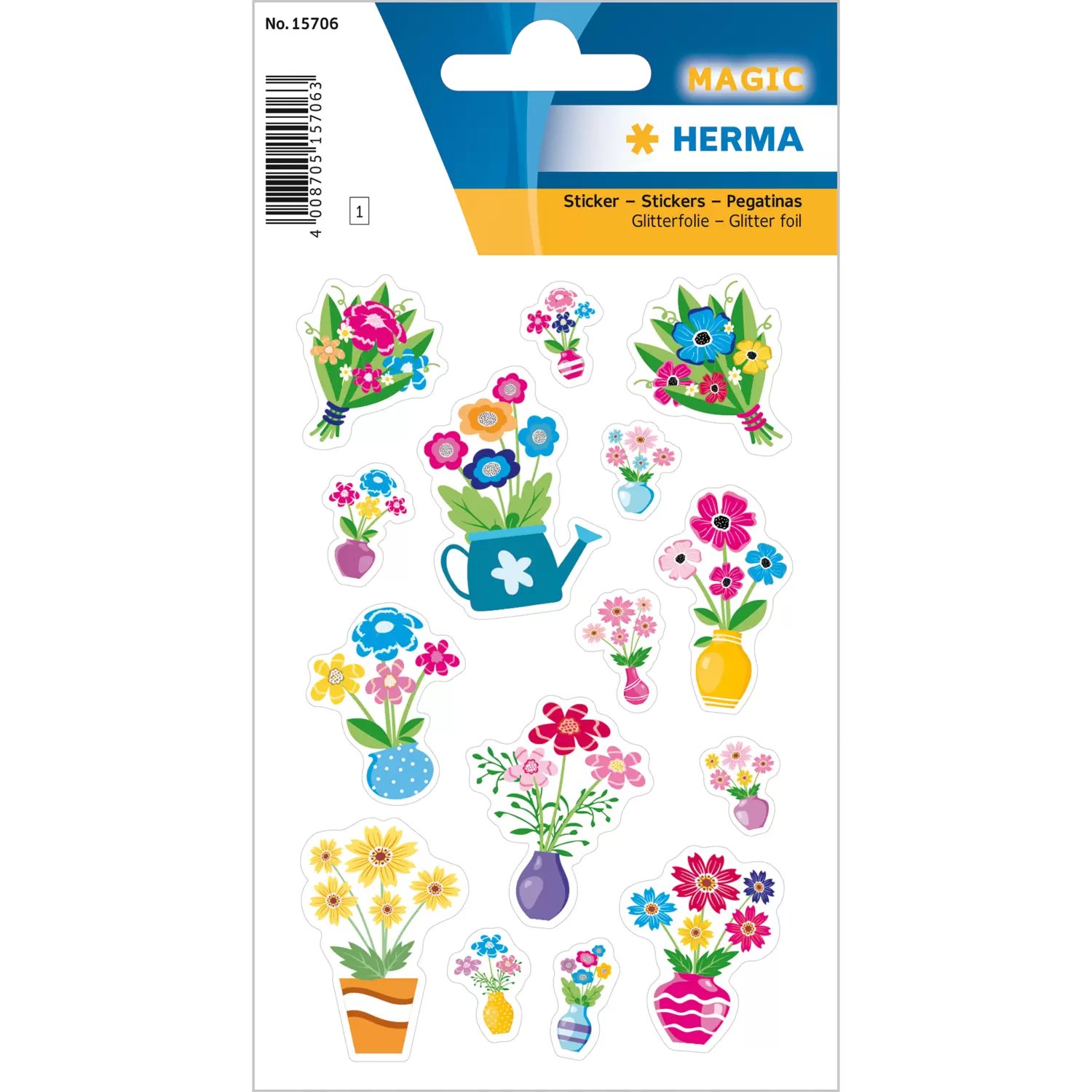 des stickers joliment dessinés avec motif floral et superbe effet brillant, 15 stickers MAGIC au total sur une feuille, notamment ap préciés par les amateurs de nature et des plantes, fabriqués d'un film pailleté de haute qualité, idéal pour décorer et embellir, collectionner et échanger, à adhérence permanente et auto-adhésive sur de nombreuses surfaces, facile à coller et à décoller