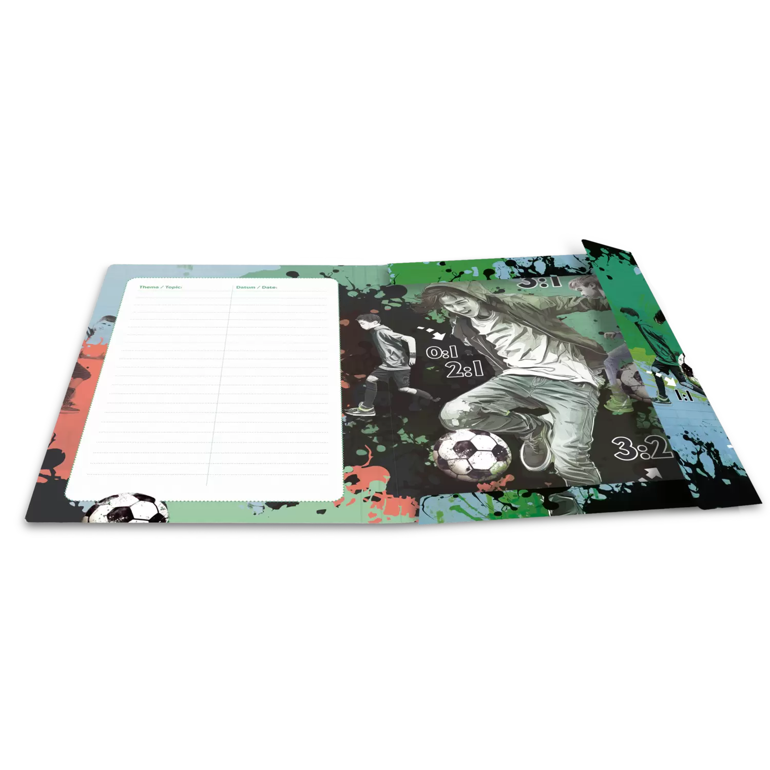 - Pour formats DIN A3 297 x 420 mm, en carton solide, avec fixations d'angle et 3 rabats intérieurs imprimés
