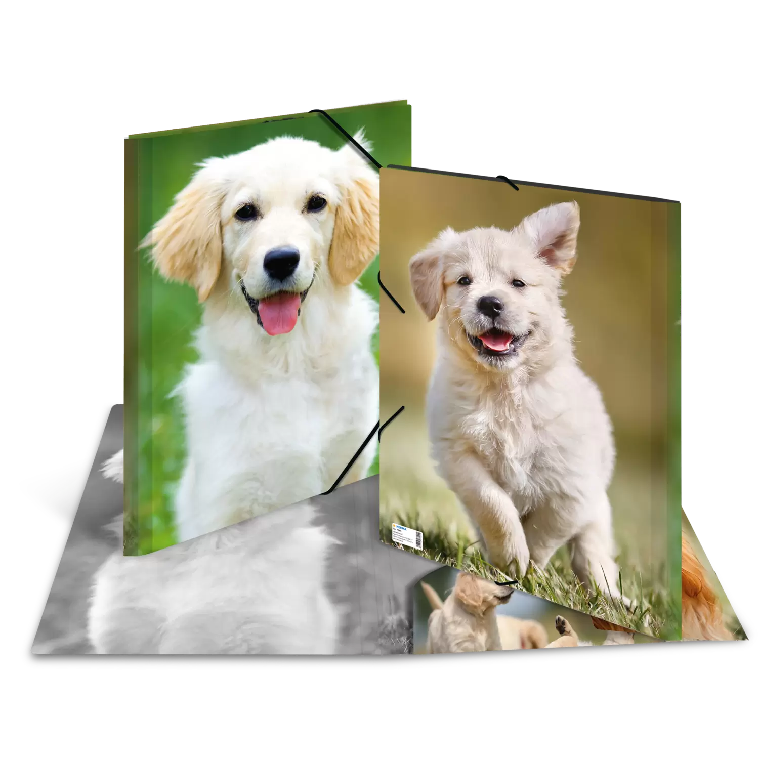Chemises à élastique avec 3 rabats imprimés. En polypropylène robuste en format A3. Idéal pour ranger vos documents. Disponible en design chiens.