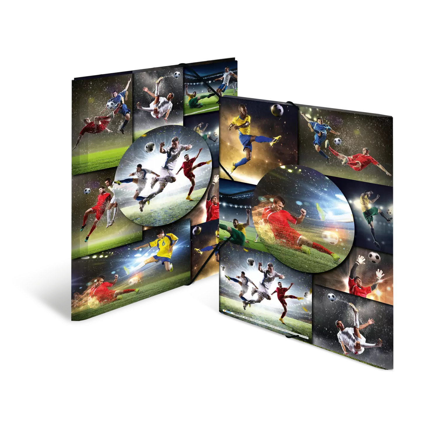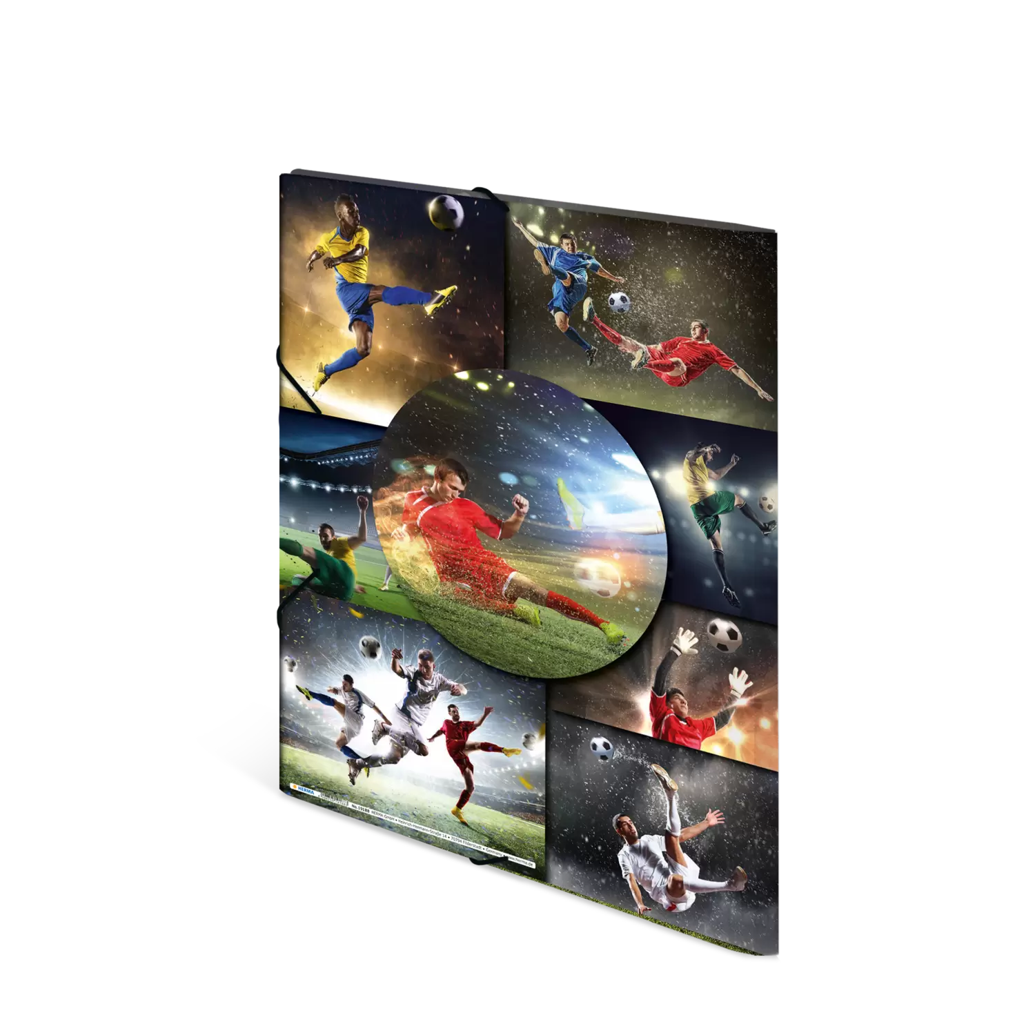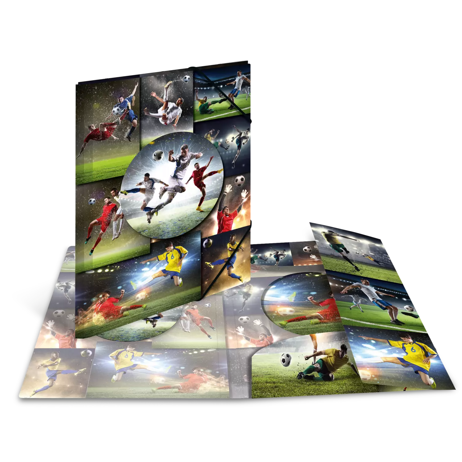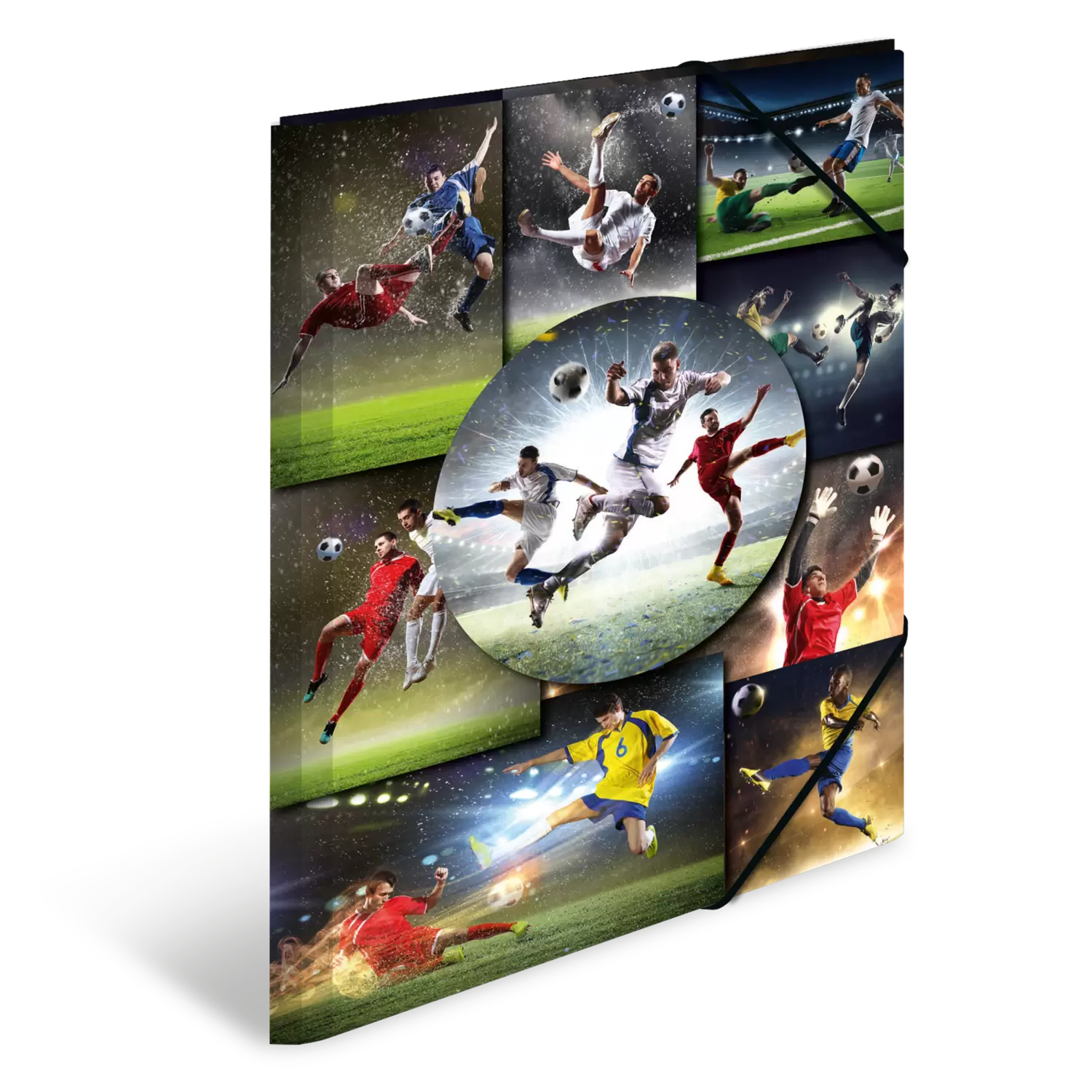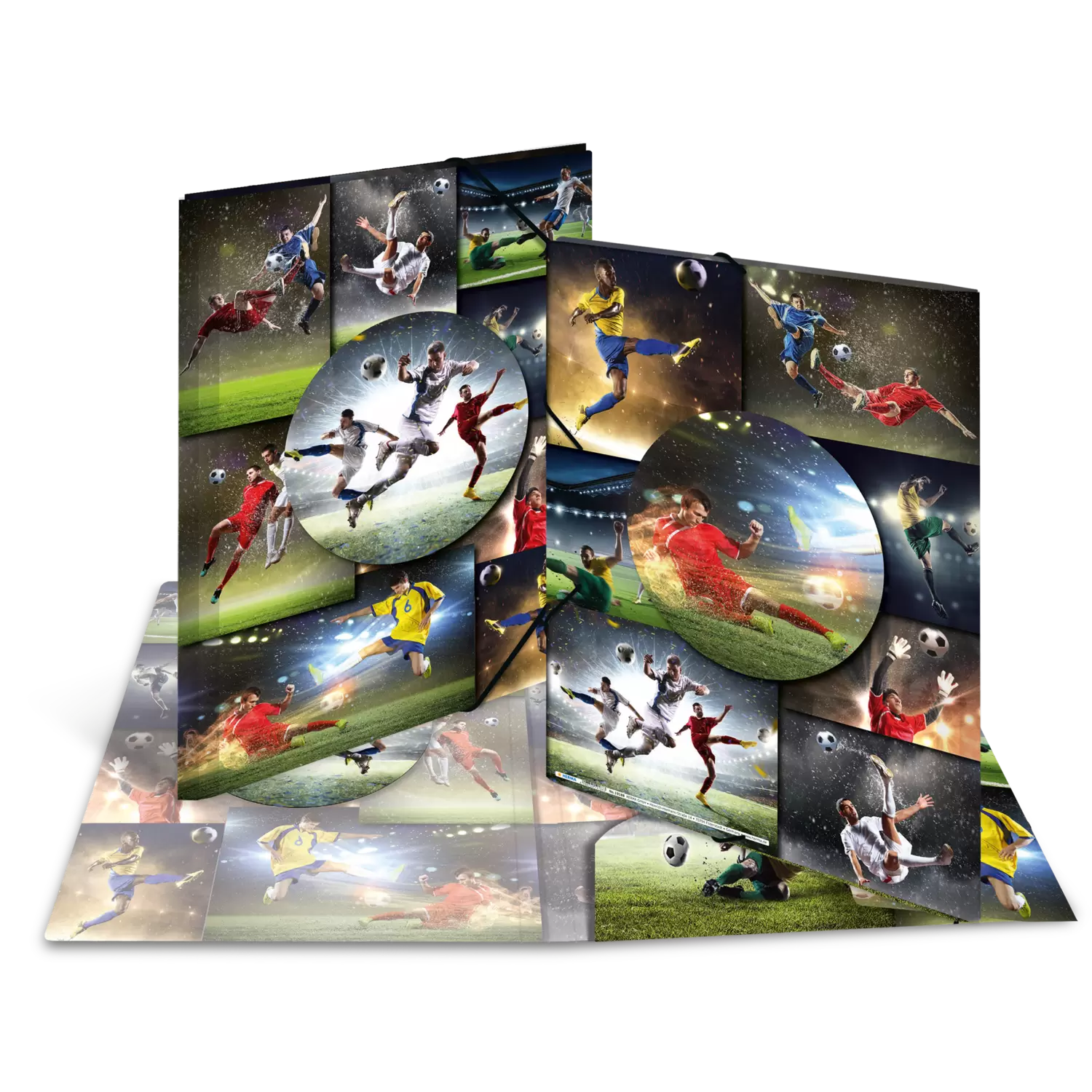 Vraiment sportive, la chemise de classement avec élastiques et languette de fermeture en design football. En polypropylène robuste en format A3. Idéale pour conserver des documents non reliés