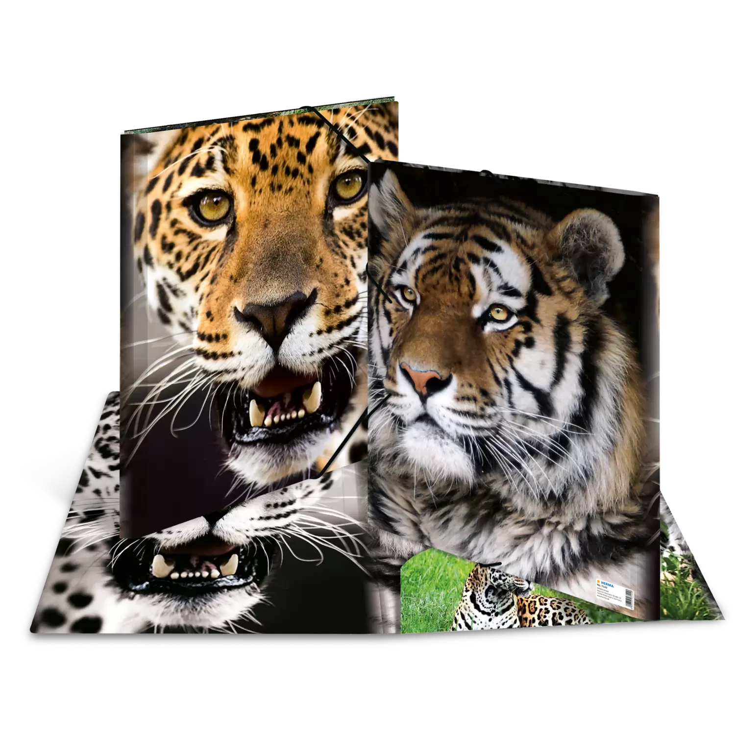 Chemises à élastique avec 3 rabats imprimés. En polypropylène robuste en format A3. Idéal pour ranger vos documents. Disponible en design léopard.