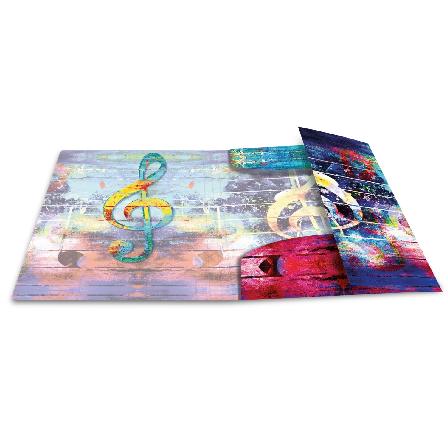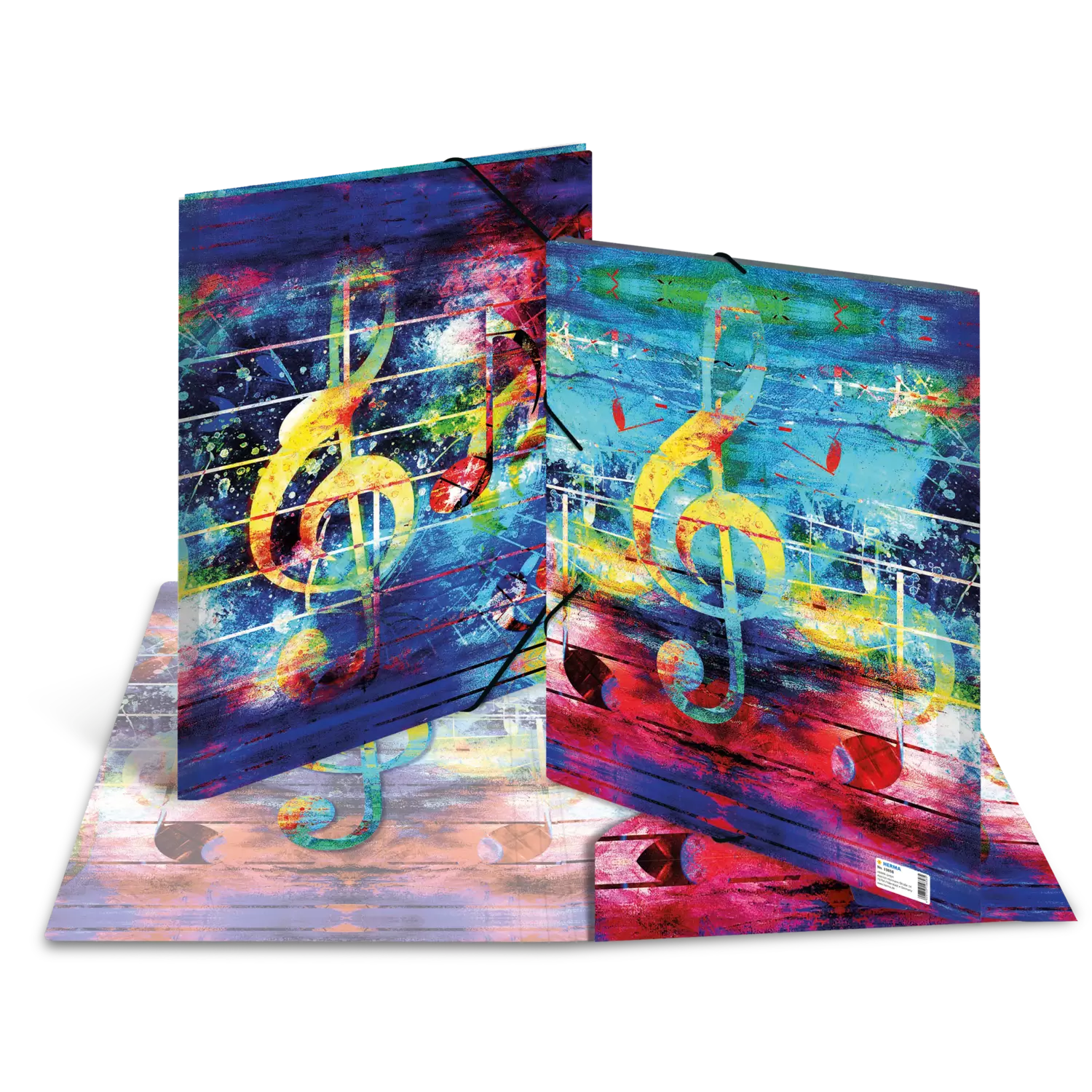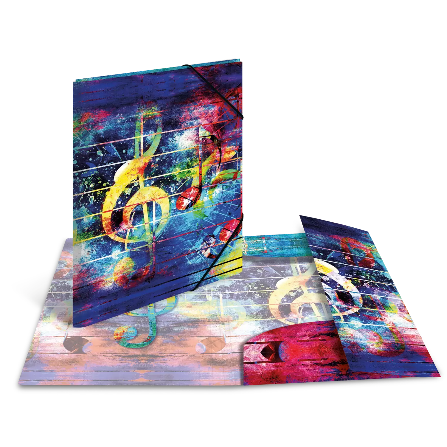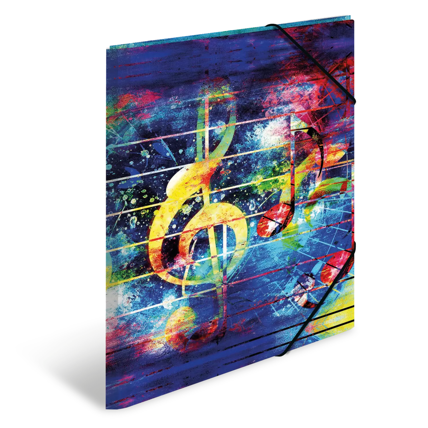 Pour en finir avec la paperasse ! Avec la nouvelle chemise de classement « Music » de HERMA vous mettez vos documents en ordre. La chemise au design cool et stylé est idéale pour ranger des feuilles et pour les retrouver rapidement en cas de besoin.Grâce au format compact, les chemises de classement conviennent parfaitement pour les documents jusqu'au format DIN A4 et peuvent être rangées aisément dans le sac à dos, le cartable ou dans le porte-documents. Tout ce dont vous avez besoin peut ainsi être transporté facilement du bureau, de l'école ou de l'université à la maison. Cette chemise élastique très chic mais en même temps très visible et moderne avec son design Music aux couleurs vives qui saute tout de suite aux yeux parmi les nombreuses autres chemises grâce à son aspect unique. Elle est idéale pour les musiciens et les amateurs de musique pour le rangement des notes et des feuilles de notes, des tablatures de guitares, des idées pour des chansons et des inspirations musicales, pour les visites à la clientèle, les travaux réalisés sur commande et des présentations. Mais cette chemise convient également pour les compositeurs, les guitaristes, les pianistes et les amateurs de musique et tous ceux qui s'intéressent à la culture, la musique, les instruments et la composition, pour les fans de musique classique, Jazz, Blues et Folk. Le motif unique « Music » attire sans d oute tous les regards au bureau ou à l'école. Les chemises de rangement sont idéales pour le rassemblement et le classement des feuilles éparpillées, des documents, des notes ou des lettres importantes et disposent de fixations d'angle de qualité qui évitent que le contenu ne tombe ou soit perdu. Les papiers bénéficient aussi d'une protection optimale contre la saleté, les salissures et autres facteurs extérieurs car la chemise de rangement de HERMA dispose de trois rabats intérieurs intégrés. Elles sont en outre très robustes et lavables. Fabriquées en polypropylène solide les chemises vous aident à mettre de l'ordre et à vous donner un aperçu de vos différents documents.