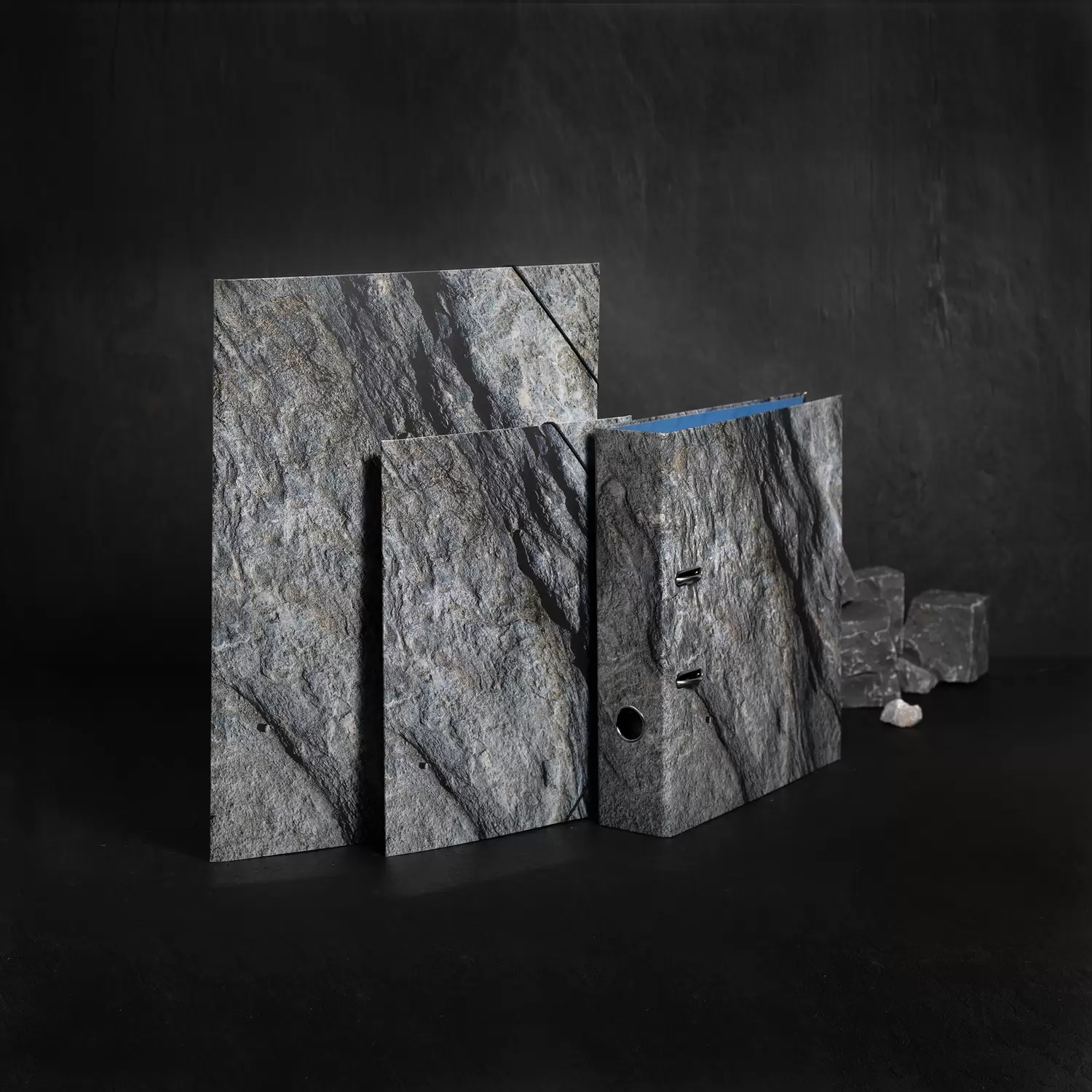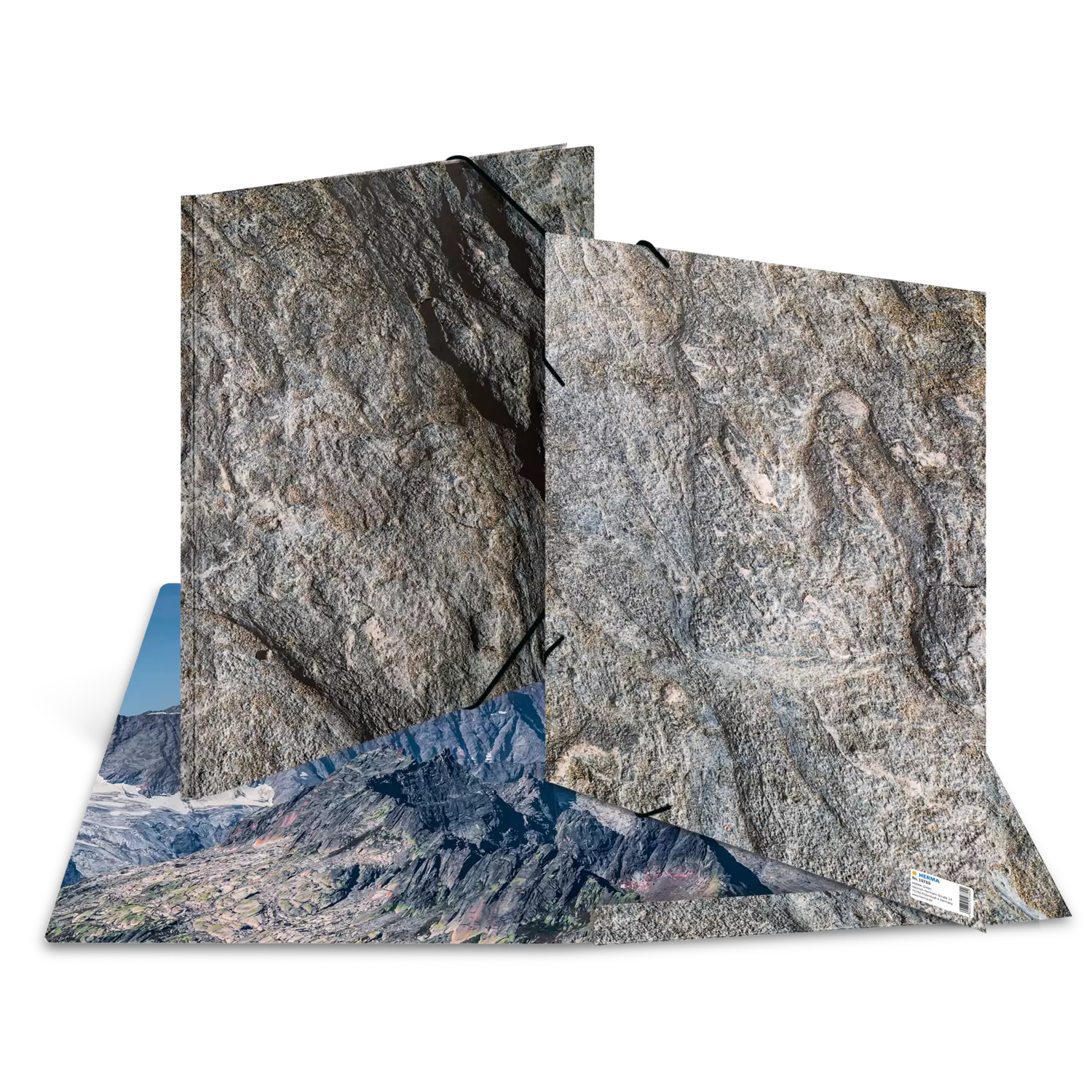La nature crée de véritables œuvres d'art : des crevasses gigantesques, des montagnes hautes de plusieurs kilomètres, des océans infinis, des arbres qui s'élancent vers le ciel – un mélange grandiose de force et de beauté. La série de chemises de classement Deluxe de HERMA « Nature » montre les chefs d'œuvre à l'état brut de la nature : reliefs ancestraux, qui se sont formés en des temps immémoriaux, imposants et pourtant fragiles, sauvages et imprévisibles, aux formes subtiles : une œuvre intemporelle, un moment fugace, un retour vers le passé des glaces éternelles. La chemise de classement « Stone » représente la ruguosité du roc et de la pierre, un motif où les reliefs massifs contrastent avec les formes douces et délavées, exposées au vent et à la pluie. Dur et tendre à la fois, indomptable et pourtant rongé par le temps qui passe. Un bel accessoire pour le bureau ou sur l'étagère. Sa particularité : la finition de qualité qui fait de cette élégante chemise de classement un produit haut de gamme. Un hommage à la nature – la plus grande artiste de tous les temps.