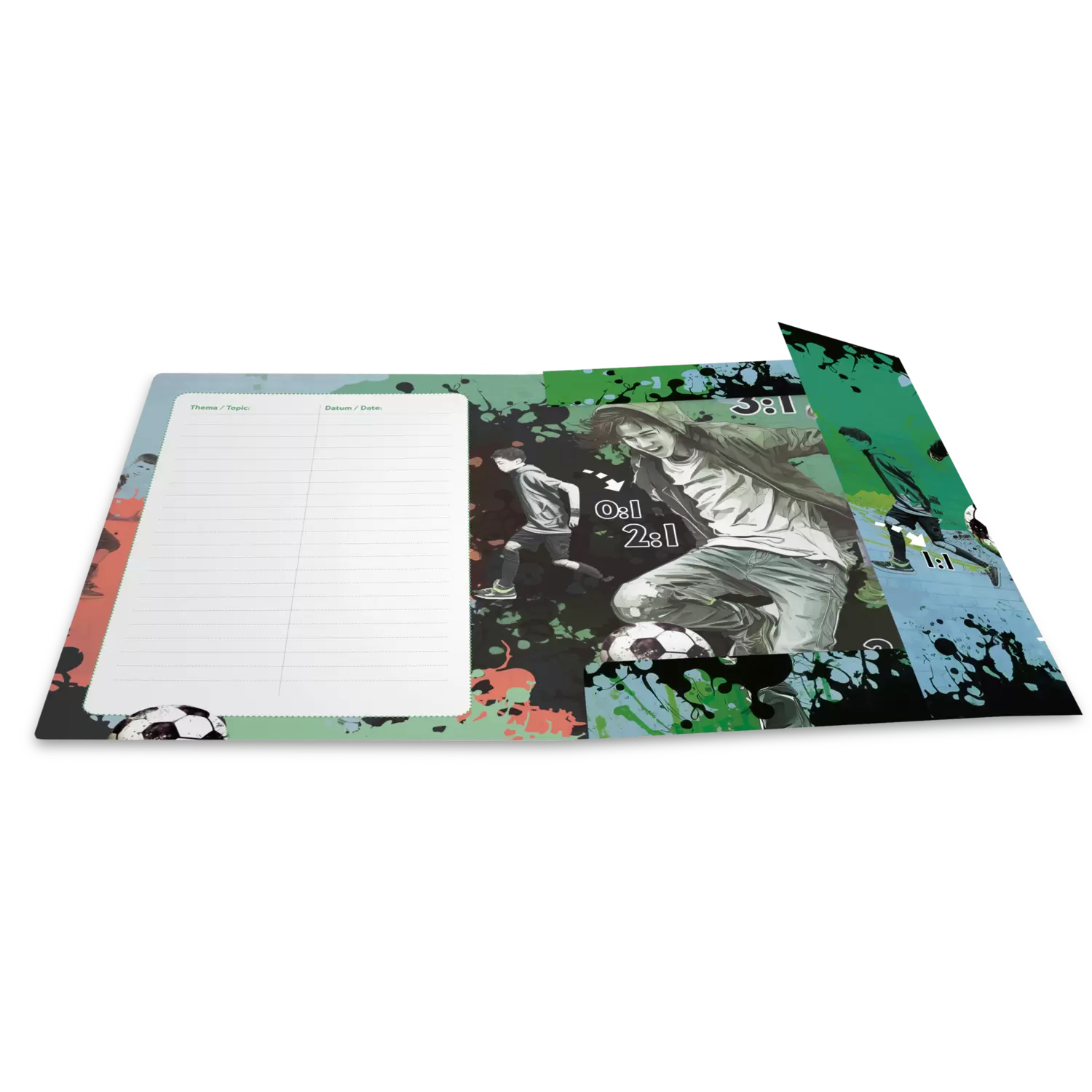 - Pour formats DIN A4 210 x 297 mm, en carton solide, avec fixations d'angle et 3 rabats intérieurs imprimés