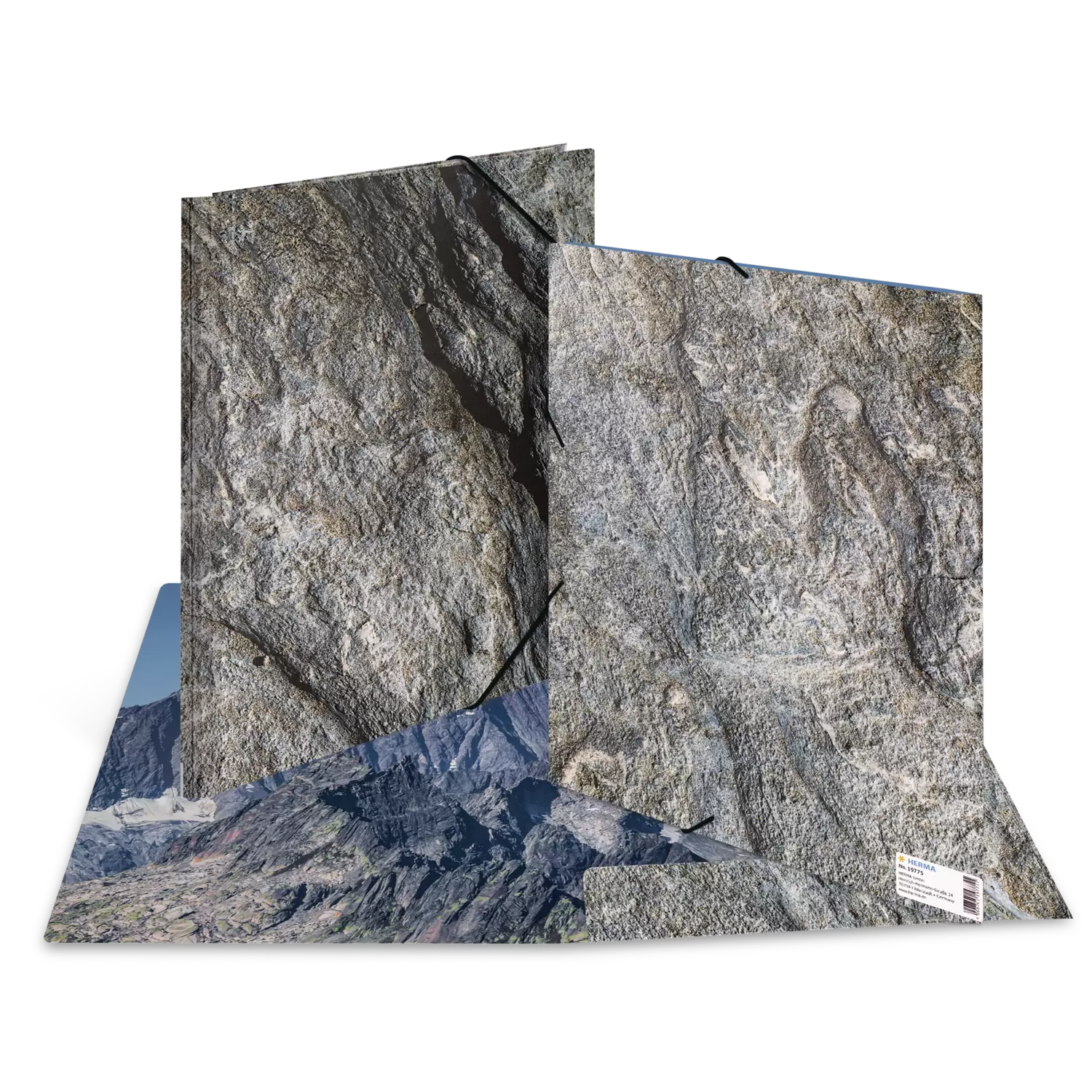 La nature crée de véritables œuvres d'art : des crevasses gigantesques, des montagnes hautes de plusieurs kilomètres, des océans infinis, des arbres qui s'élancent vers le ciel – un mélange grandiose de force et de beauté. La série de chemises de classement Deluxe de HERMA « Nature » montre les chefs d'œuvre à l'état brut de la nature : reliefs ancestraux, qui se sont formés en des temps immémoriaux, imposants et pourtant fragiles, sauvages et imprévisibles, aux formes subtiles : une œuvre intemporelle, un moment fugace, un retour vers le passé des glaces éternelles. La chemise de classement « Stone » représente la ruguosité du roc et de la pierre, un motif où les reliefs massifs contrastent avec les formes douces et délavées, exposées au vent et à la pluie. Dur et tendre à la fois, indomptable et pourtant rongé par le temps qui passe. Un bel accessoire pour le bureau ou sur l'étagère. Sa particularité : la finition de qualité qui fait de cette élégante chemise de classement un produit haut de gamme. Un hommage à la nature – la plus grande artiste de tous les temps.