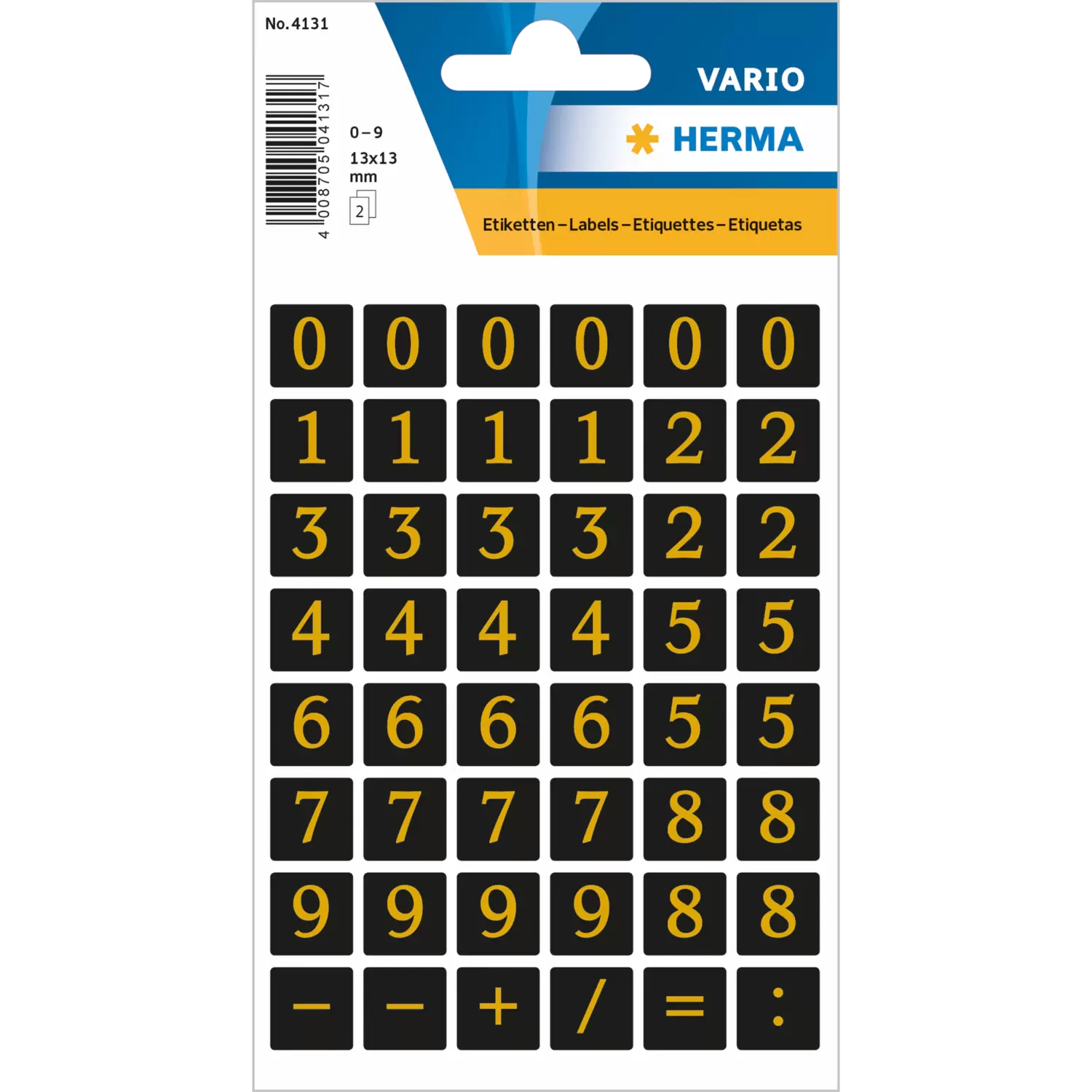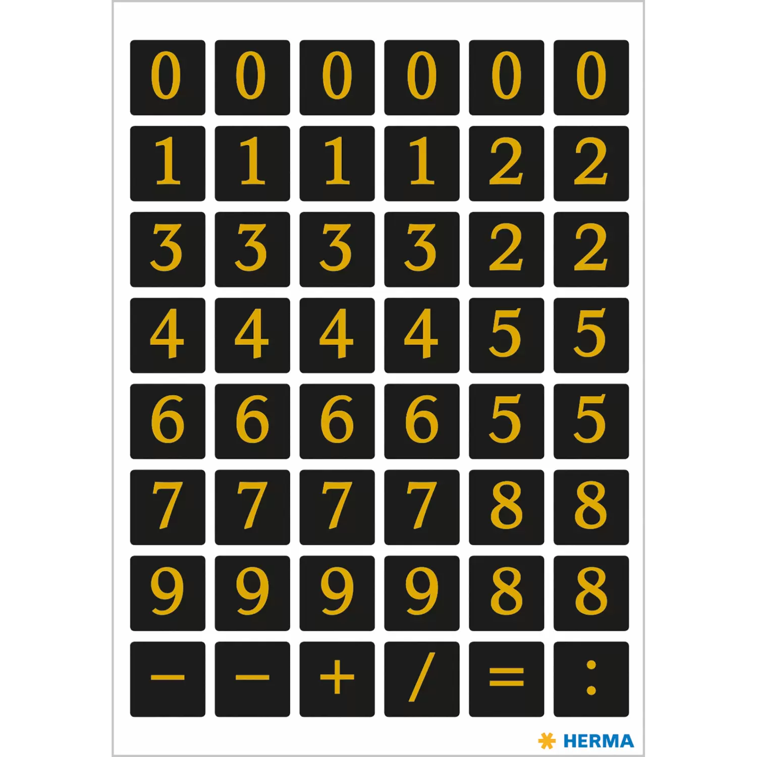 Chiffres dorées 13x13 mm 0-9, sur film synthétique noir, en relief, 2 feuilles