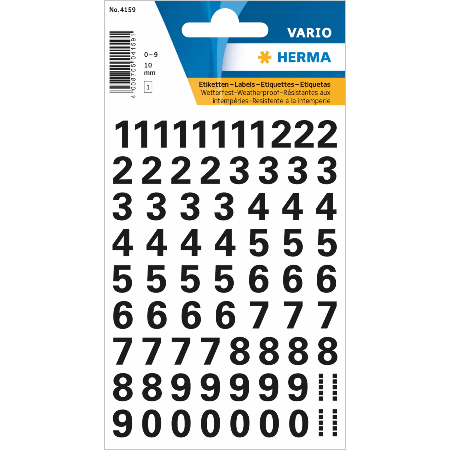 Chiffres noirs 10 mm 0-9, résistants à l'intempérie, film synthétique, 1 feuille