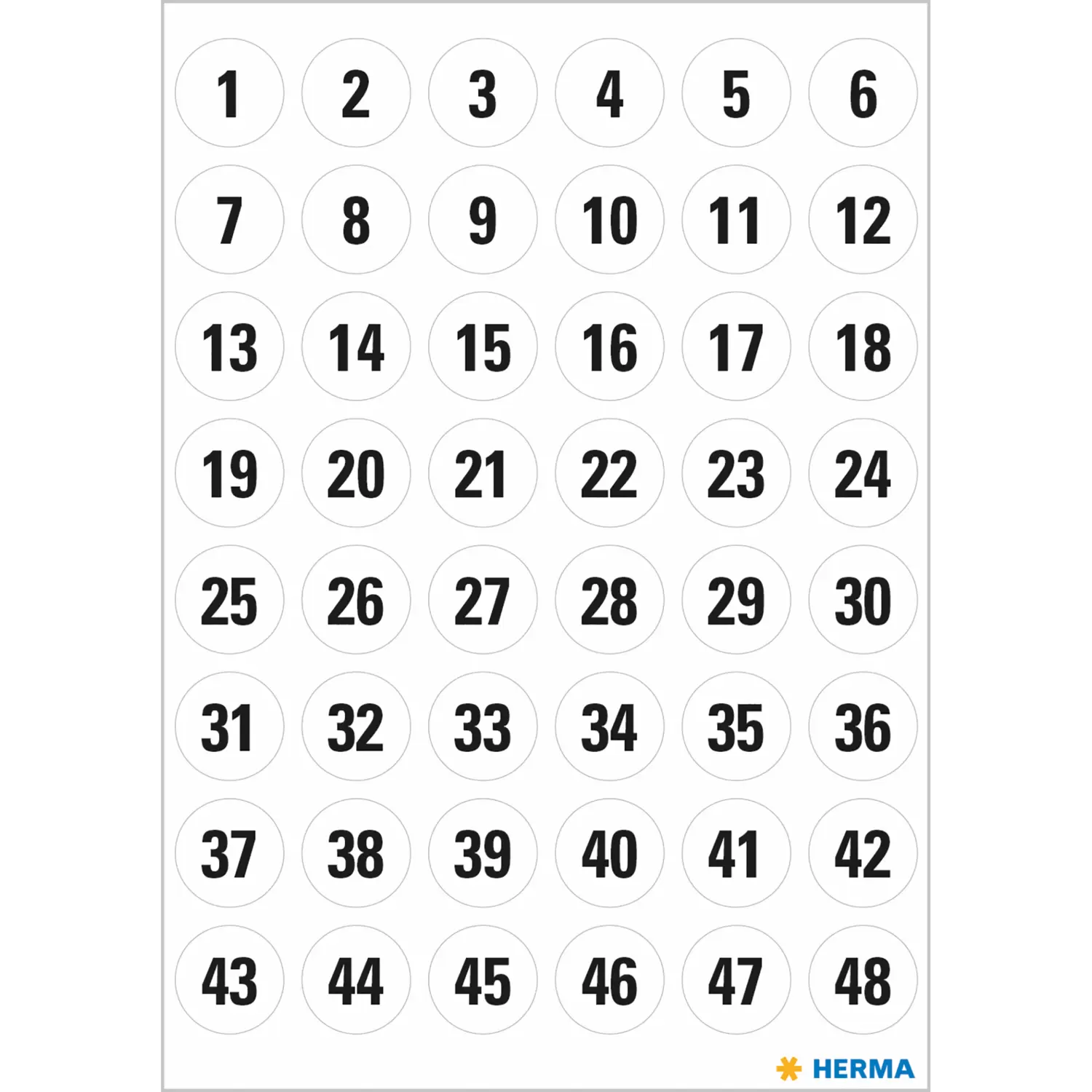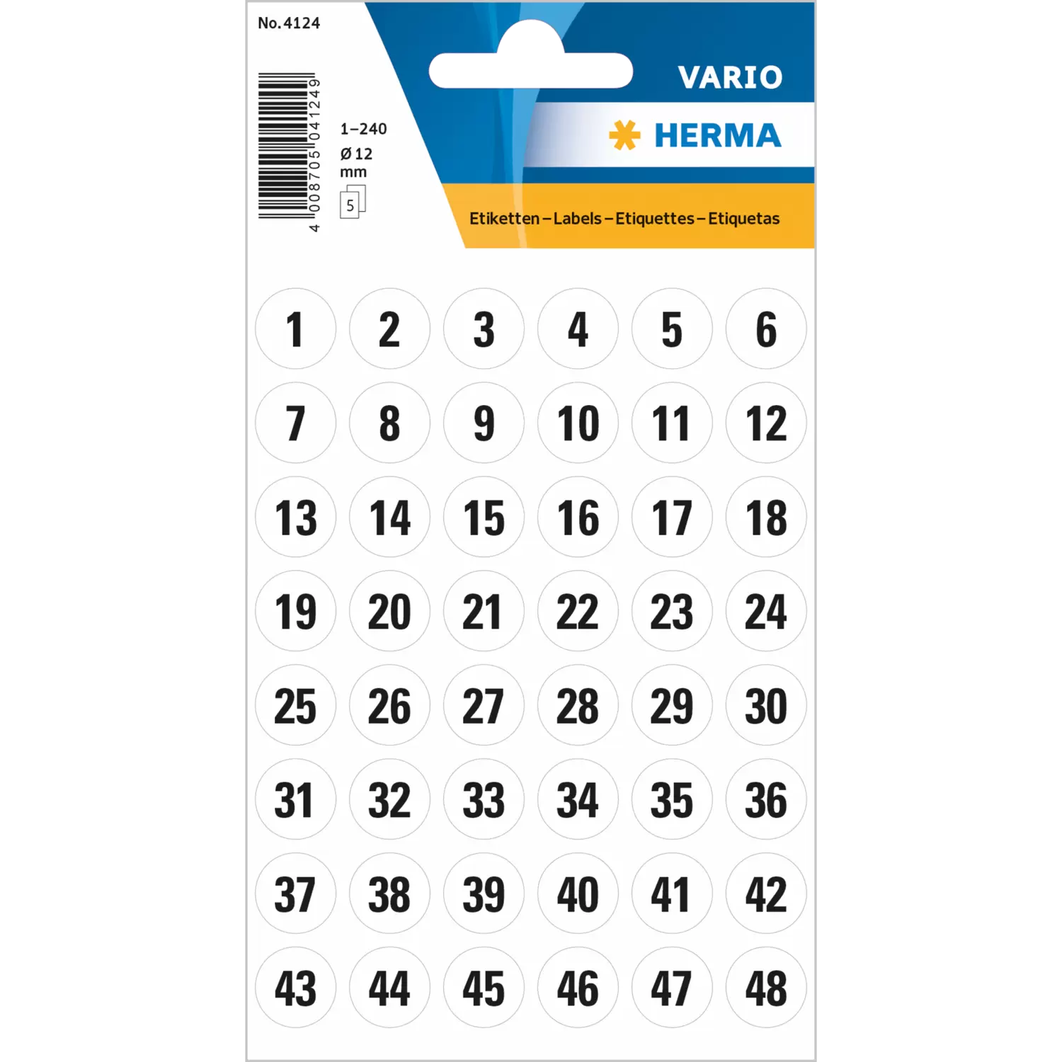 Chiffres noirs Ø 12 mm 1-240, papier blanc, 5 feuilles