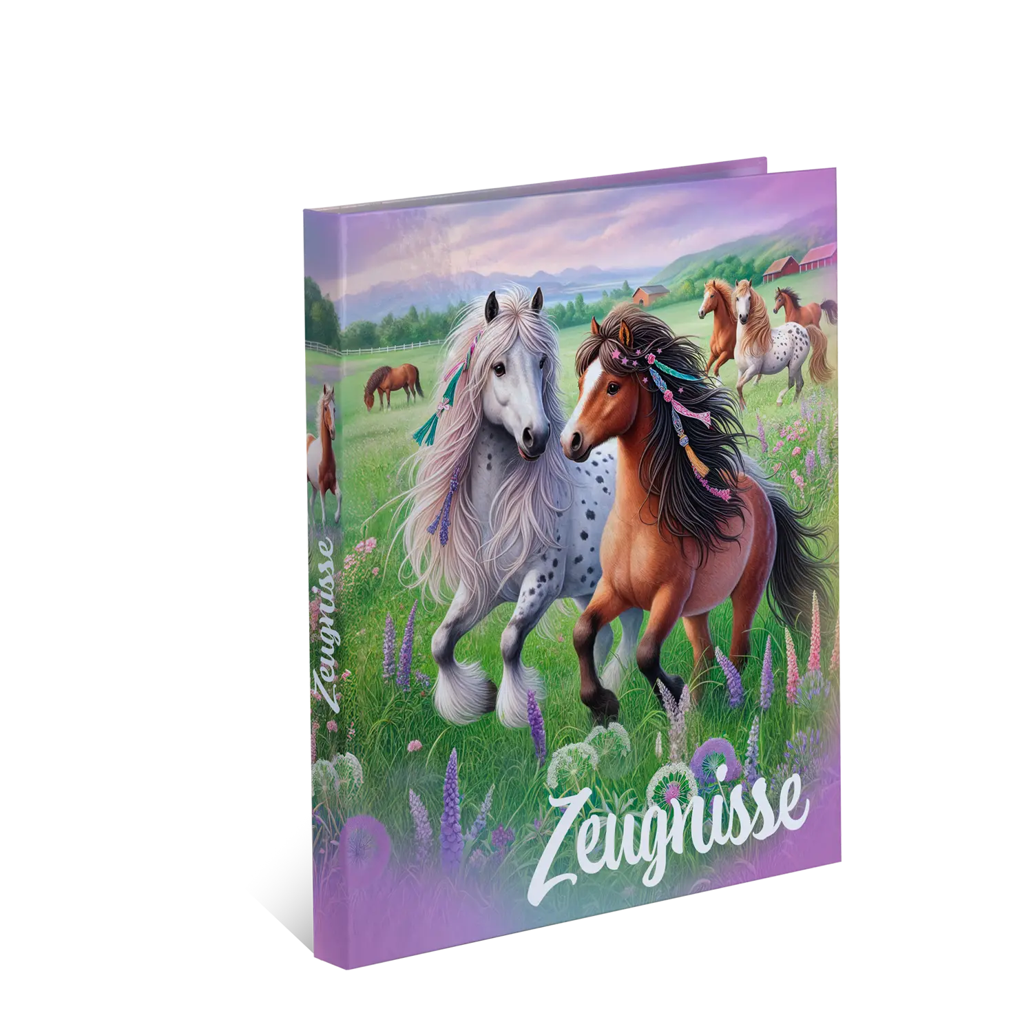 Le classeur à anneaux pour bulletins Monde du cheval de HERMA au format A4 séduit par ses motifs équestres raffinés et sa surface brillante. La couverture solide et entièrement imprimée à l'intérieur comme à l'extérieur protège efficacement les bulletins scolaires, les actes officiels et les documents importants. Grâce à un mécanisme à 4 anneaux pratique et à un dispositif de retenue, les documents peuvent être facilement classés et échangés. Contient 10 pochettes transparentes pouvant contenir jusqu'à 20 feuilles. Une table des matières pratique à remplir soi même permet de tout classer parfait pour l'école, la formation et les amateurs de chevaux.