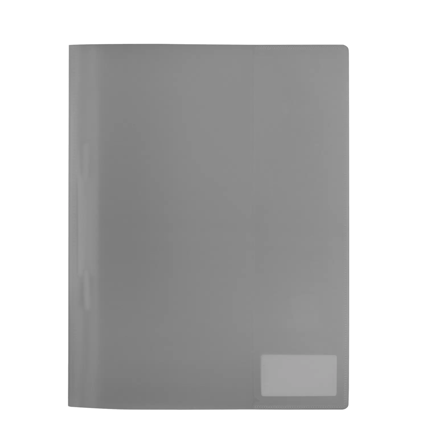 - Classeur à lamelle pour A4 en film propylène écologique, fortement translucide avec languette métallique, dans 14 coloris, avec étiquette de marquage et pochette