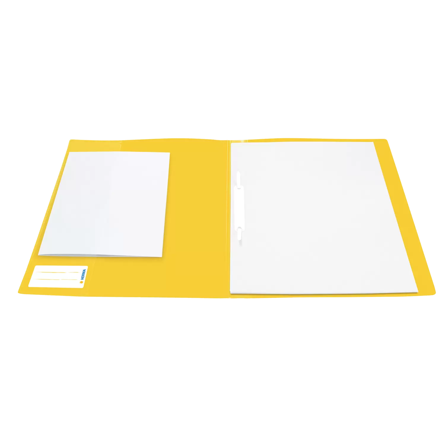 Ce classeur à lamelle jaune est un auxiliaire très pratique aussi bien à l’école et au bureau qu’au quotidien. Ce classeur translucide permet de ranger rapidement et facilement des feuilles volantes au format DIN A4 avec perforation standard. Grâce à la couverture légèrement transparente du classeur à lamelle jaune, il est possible de reconnaître aussitôt quels documents sont placés dedans. Une étiquette de marquage se trouve de plus sur le classeur. Il est possible d’y noter des renseignements sur le contenu ou bien le nom du propriétaire. Grâce à l’étiquette, on apprend aussitôt ce que contient le classeur ou à qui ce classeur jaune doit être rapporté. Par ailleurs, il est possible de ranger des feuilles volantes non perforées dans la pochette intérieure. Le classeur à lamelle vous permet non seulement de ranger clairement documents commerciaux, papiers importants ou notes utiles mais aussi de les protéger efficacement des conditions extérieures néfastes telles que l’humidité ou la saleté et de les transporter en toute sûreté. La languette métallique solide à l’intérieur assure, de plus, le bon maintien des documents. Le classeur à lamelle mince et léger en plastique prend peu de place et aide ainsi de manière optimale à ranger et classer.