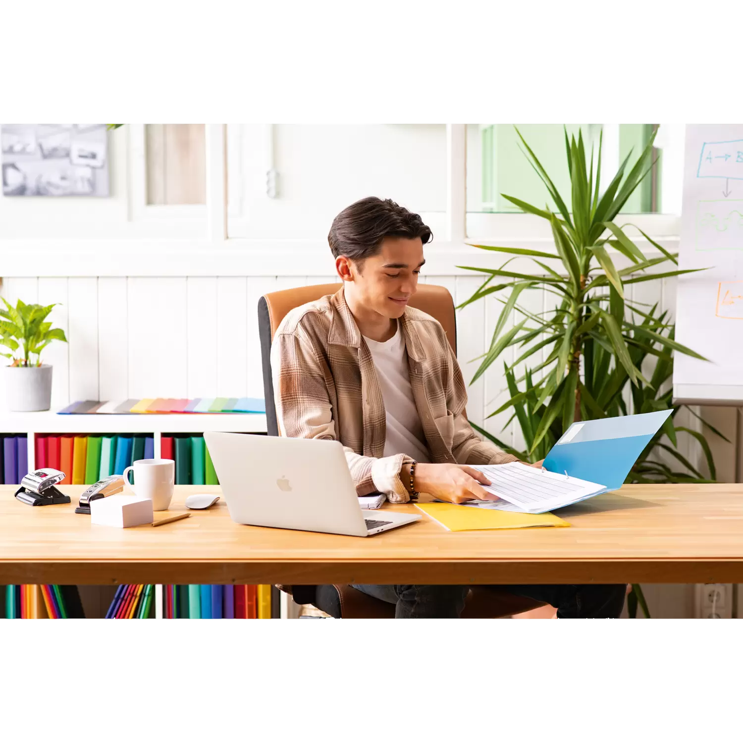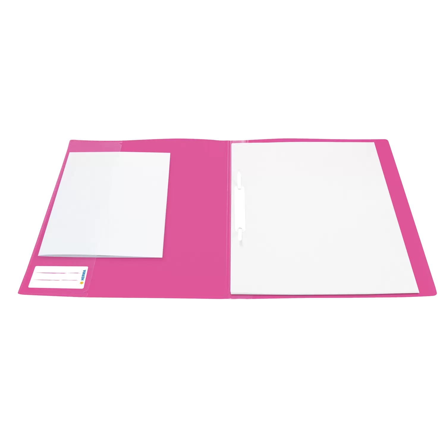 Ranger n’est pas votre fort? Avec le classeur à lamelle translucide doté d’une pochette et d’une étiquette, l’organisation se fait d’elle-même. Le classeur rose maintient en place tous les documents grâce à la languette métallique de manière à ce que les documents personnels, fiches de travail ou notes du bureau soient regroupés de manière fiable. L’enveloppe en polypropylène garantit une protection suffisante des feuilles et le plastique remplit sa fonction même dans les pires conditions météorologiques. Le matériau transparent permet de voir à travers quels documents sont classés dans le classeur à lamelle et grâce à l’étiquette de marquage collée dessus, il est simple d’ajouter de plus amples informations sur le contenu ou le propriétaire de ce classeur. Le classeur à lamelle s’avère également très pratique dans les situations où une perforatrice fait défaut. La grande pochette située à l’intérieur de la couverture permet, en effet, de ranger de manière fiable et sans cornes les feuilles non perforées. Le matériau est léger et le classeur mince. Celui-ci peut donc être transporté partout sans problème. Pour l’école, l’université ou le travail, tous les documents importants au format DIN A4 sont rangés de manière optimale dans ce classeur rose.