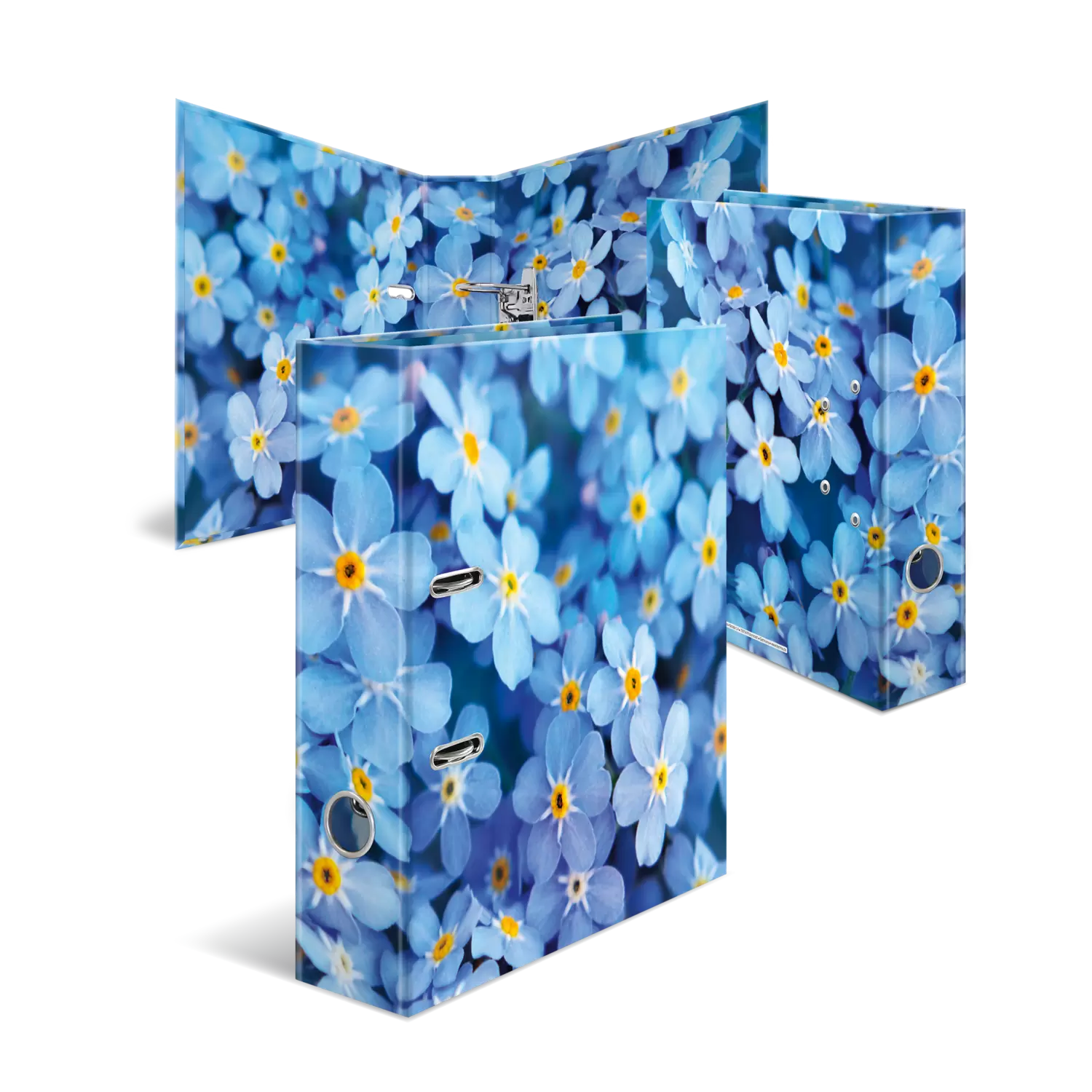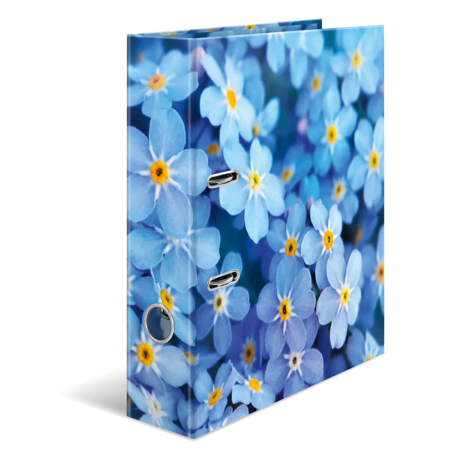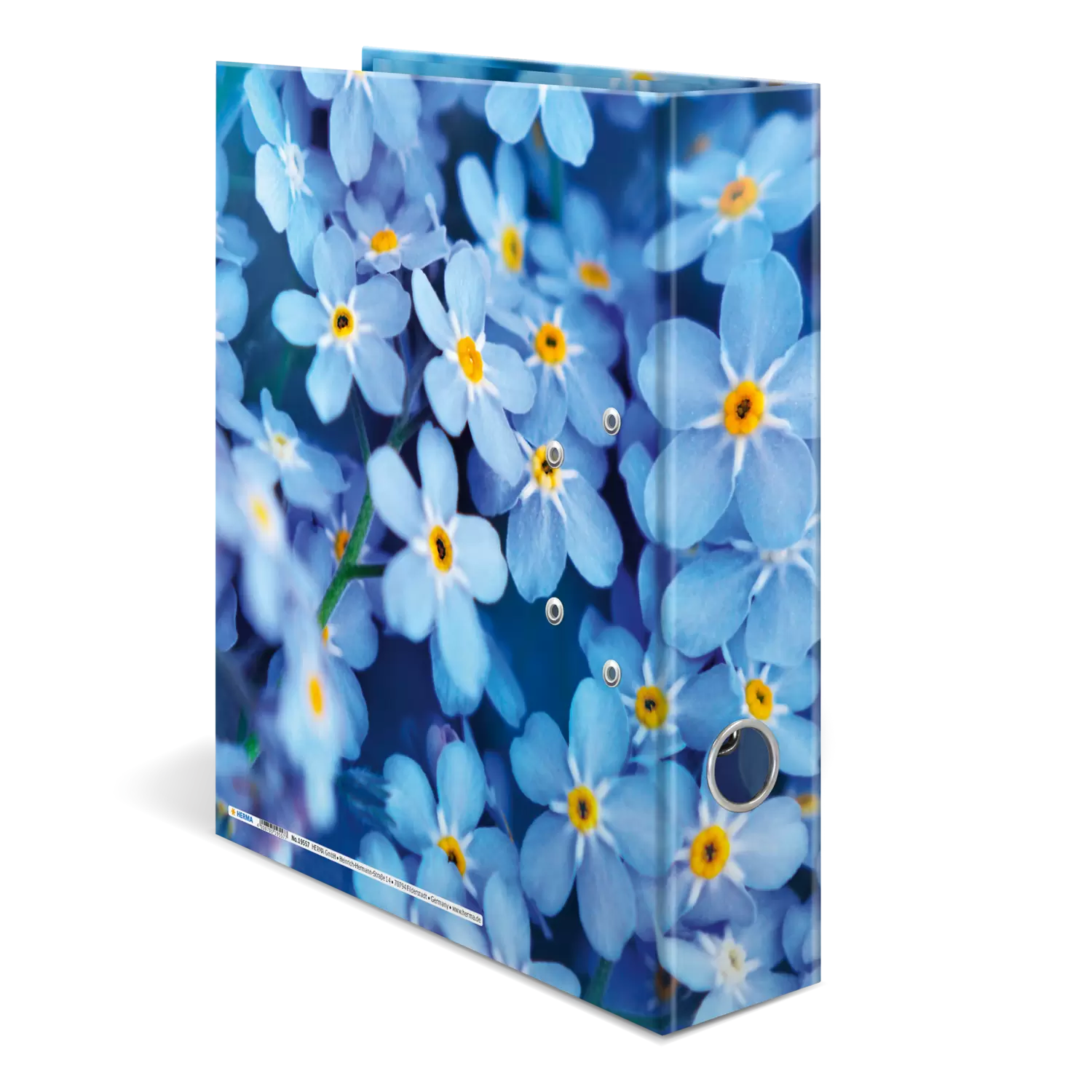 Avec le classeur à motifs HERMA au design Blue Flowers de la série Flowers, vous pouvez vous offrir la beauté du monde des fleurs multicolores à la maison, au bureau ou à l'école. Ce n'est pas pour rien que les fleurs sont les reines de la flore : elles ont toujours fasciné. Elles ont cette touche de grâce et d'élégance que seules les beautés florales peuvent offrir. Chaque espèce a ses couleurs, son parfum, son aura, délicate ou puissante, discrète ou somptueuse, toujours particulière et unique : un cadeau de diversité colorée, un plaisir pour les sens. Une mer de fleurs de myosotis d'un bleu doux, un plaisir pour les yeux et l'âme. Le mécanisme à levier spécial, avec dispositif de retenue en métal assure le bon maintien du contenu du classeur. Le dos large garantit une bonne stabilité sur l’étagère et offre suffisamment de place pour ranger un grand nombre de documents au format max. DIN A4.