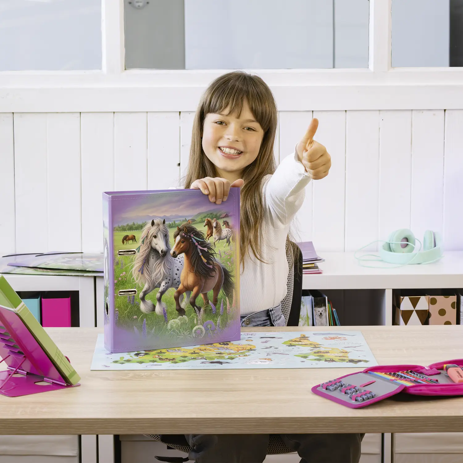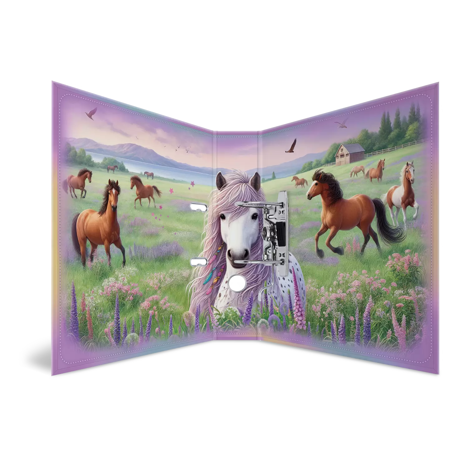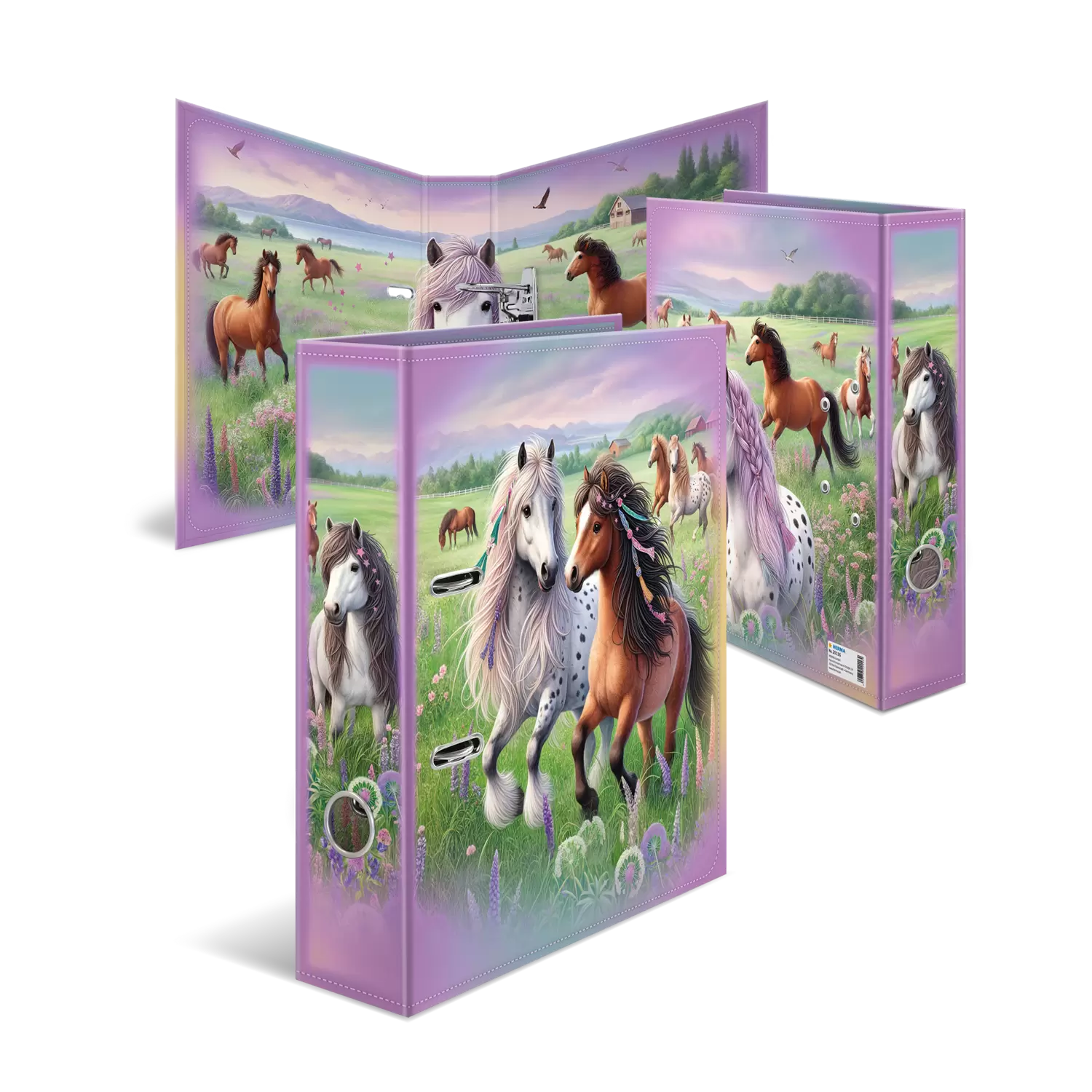 - Magnifique classeur à motifs au design Le monde des chevaux, extérieur et intérieur entièrement imprimés