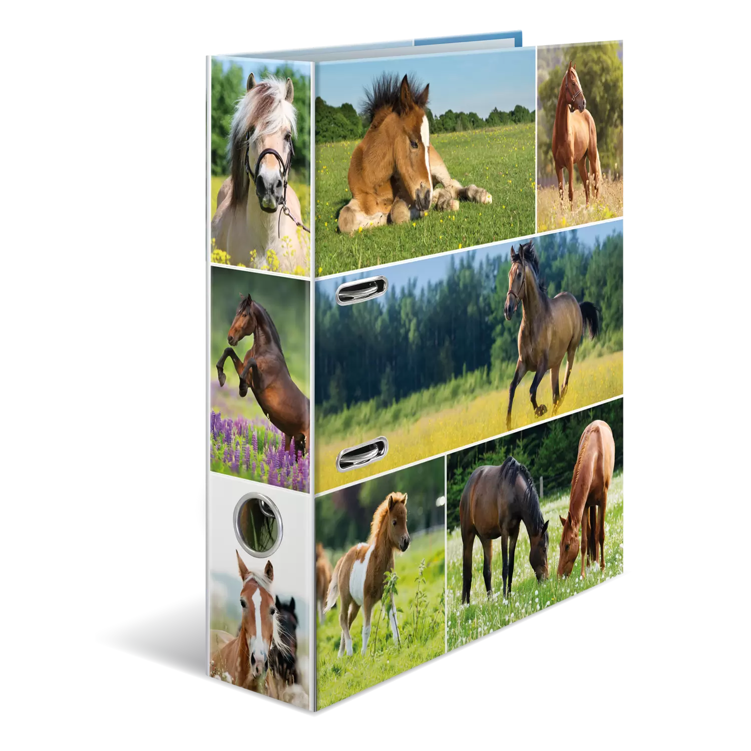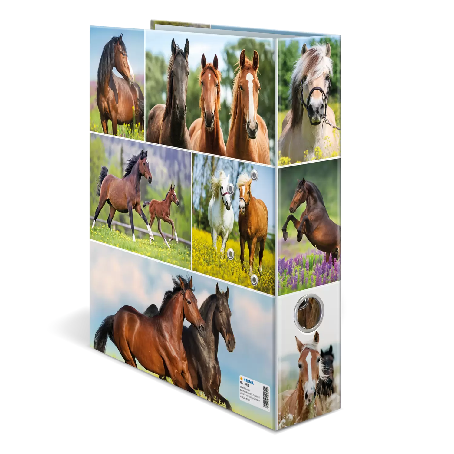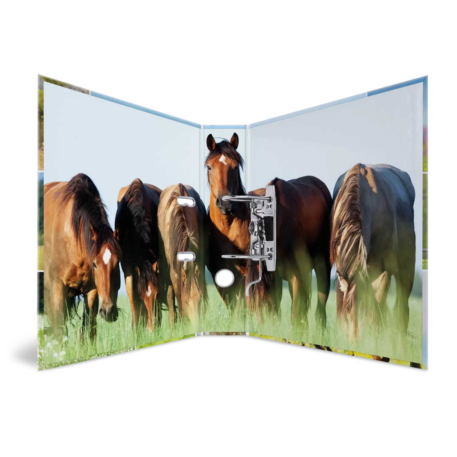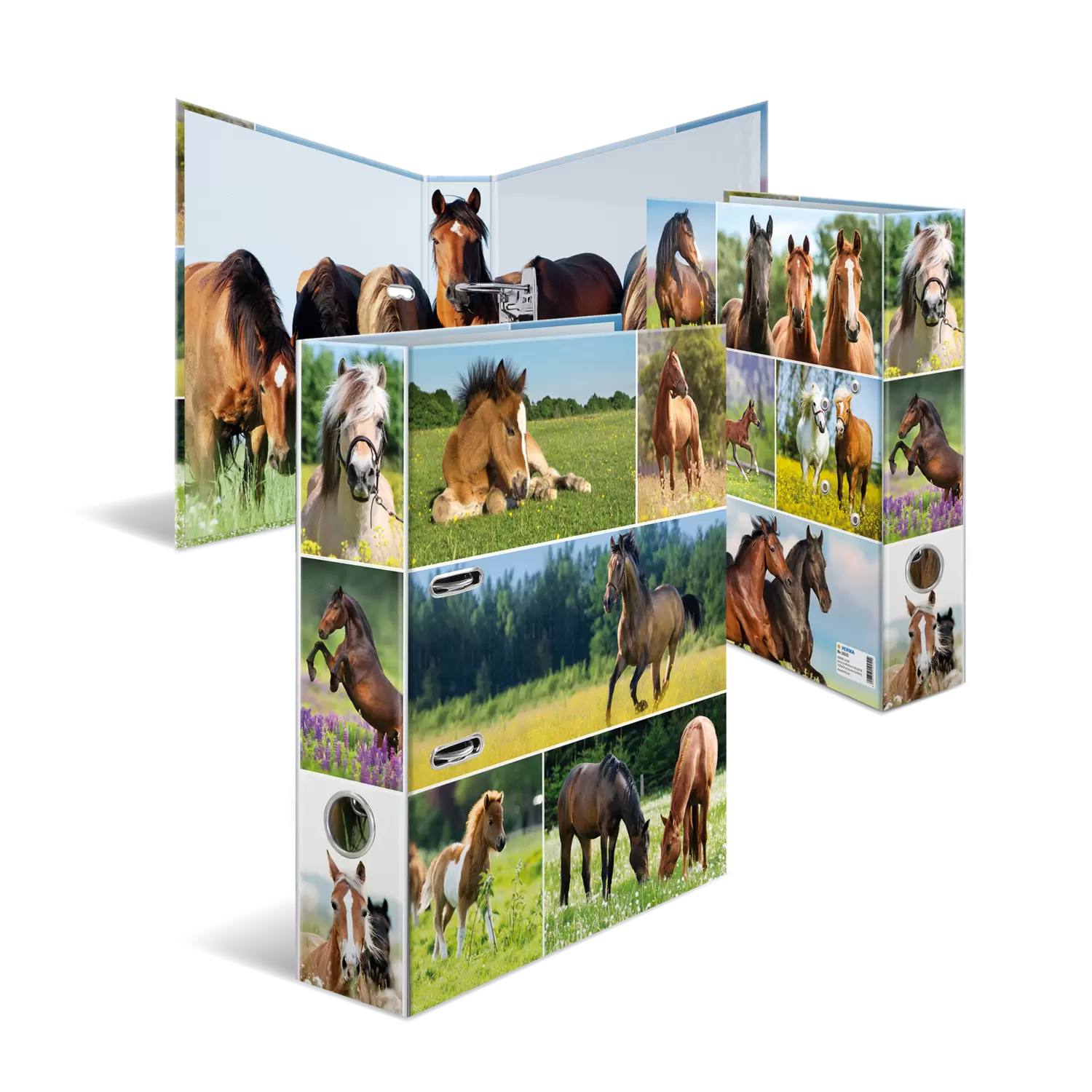 Les chevaux sont des créatures fascinantes. Grâce à leur force, leur rapidité et leur endurance, ils sont depuis longtemps les fidèles compagnons humains et, aujourd'hui encore, l'enthousiasme et l'amour pour cet animal ne se démentent pas. Pour tous les passionnés de chevaux qui aimeraient ramener leur cheval à la maison, ce classeur à motifs DIN A4 contenant de magnifiques photos de chevaux et de poneys est une véritable sensation. Le classeur est fabriqué avec qualité en carton solide, avec trou de préhension et mécanisme à levier (y compris dispositif de retenue), imprimé à l'intérieur, pour un rangement optimal de documents perforés et pochettes transparentes. Pour un rangement optimal à la maison, à l'école, à l'université, au travail - ces classeurs sont des vrais accroche-regards.