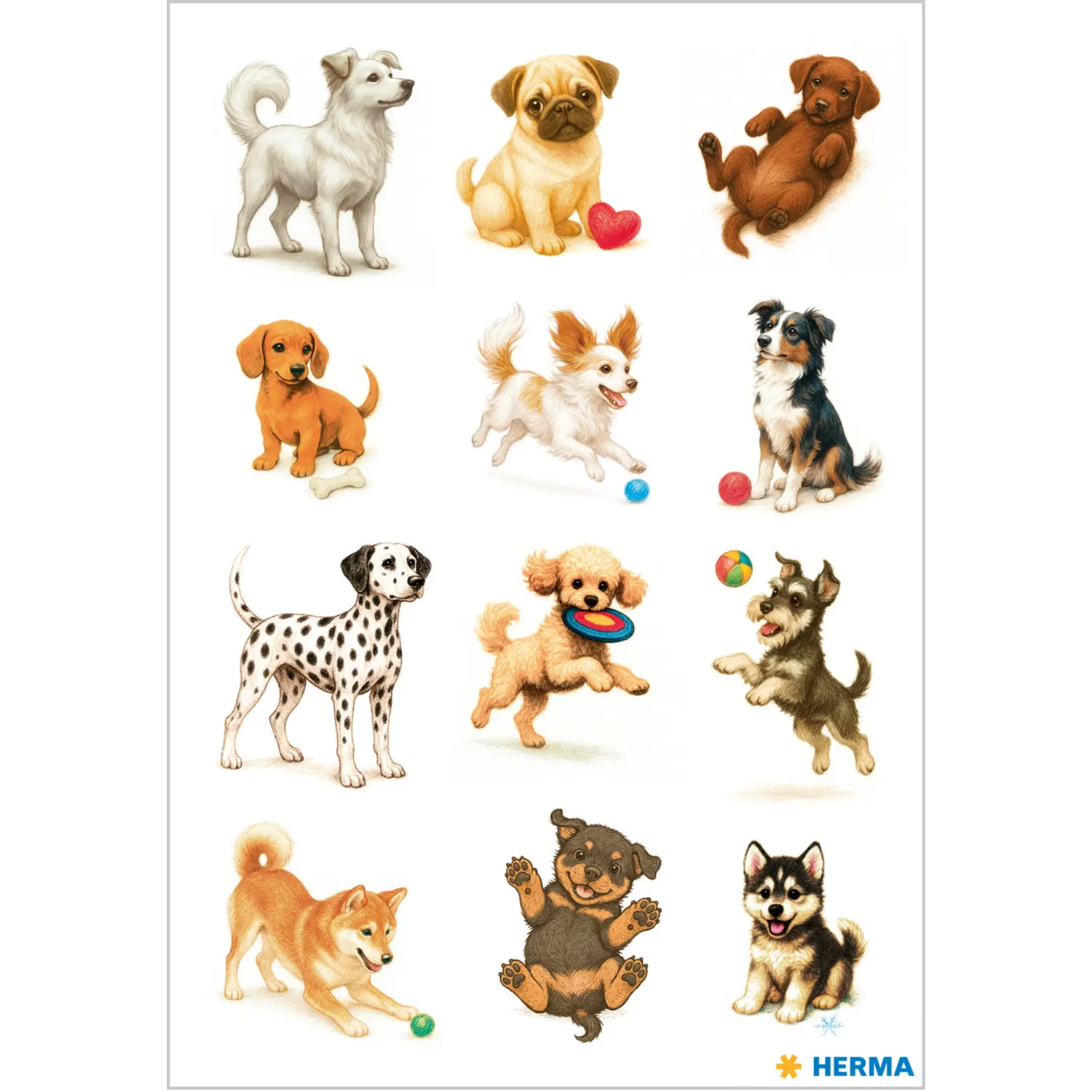Les stickers amusants et ludiques représentant des chiens respirent la joie de vivre : avec leurs grands sauts et leurs regards adorables, ces quadrupèdes dessinés avec amour conquièrent le cœur de tous les amateurs de chiens. Des chiots espiègles aux grands yeux ronds aux chasseurs de balles intelligents, chaque motif capture une scène sympathique différente de la vie quotidienne avec les chiens. Que ce soit pour collectionner et échanger ou pour décorer des livres d'amitié, des scrapbooks ou des cartes de vœux ces adorables stickers de chiens attirent tous les regards. Un petit plus qui fera sourire tous les amis des chiens en bricolant et en décorant.