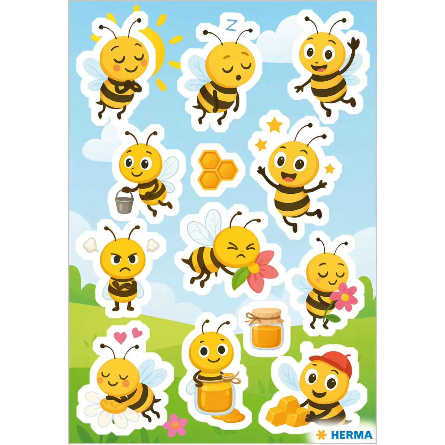 Ces stickers joyeux au motif d'abeilles à l'air espiègle égayent le quotidien de tous ceux qui aiment ces petites butineuses. Chaque abeille est illustrée avec amour et ses mignons petits yeux invitent à rire et à rêver. Ce set de stickers permet d'accompagner les abeilles dans leur quotidien : parfois, les petites abeilles partent à la découverte, parfois elles dorment paisiblement au milieu de fleurs colorées. Les stickers parfaits pour des journées d'été ensoleillées ! Que ce soit sur un pot de miel, dans un livre d'amis ou dans un cahier de devoirs, ces abeilles travailleuses sont idéales à collectionner, échanger ou pour décorer, car où qu'elles se trouvent, elles attirent to us les regards. En guise de petite surprise, elles font rapidement apparaître un sourire sur les visages et apportent une touche colorée et fantaisiste dans chaque chambre d'enfant !