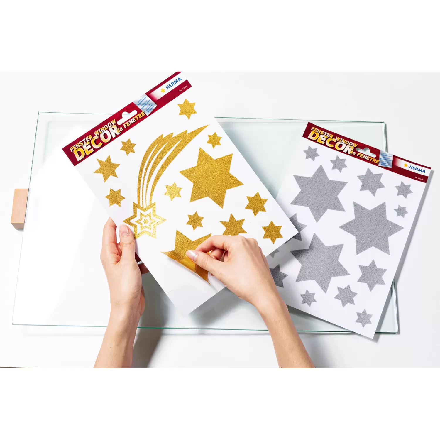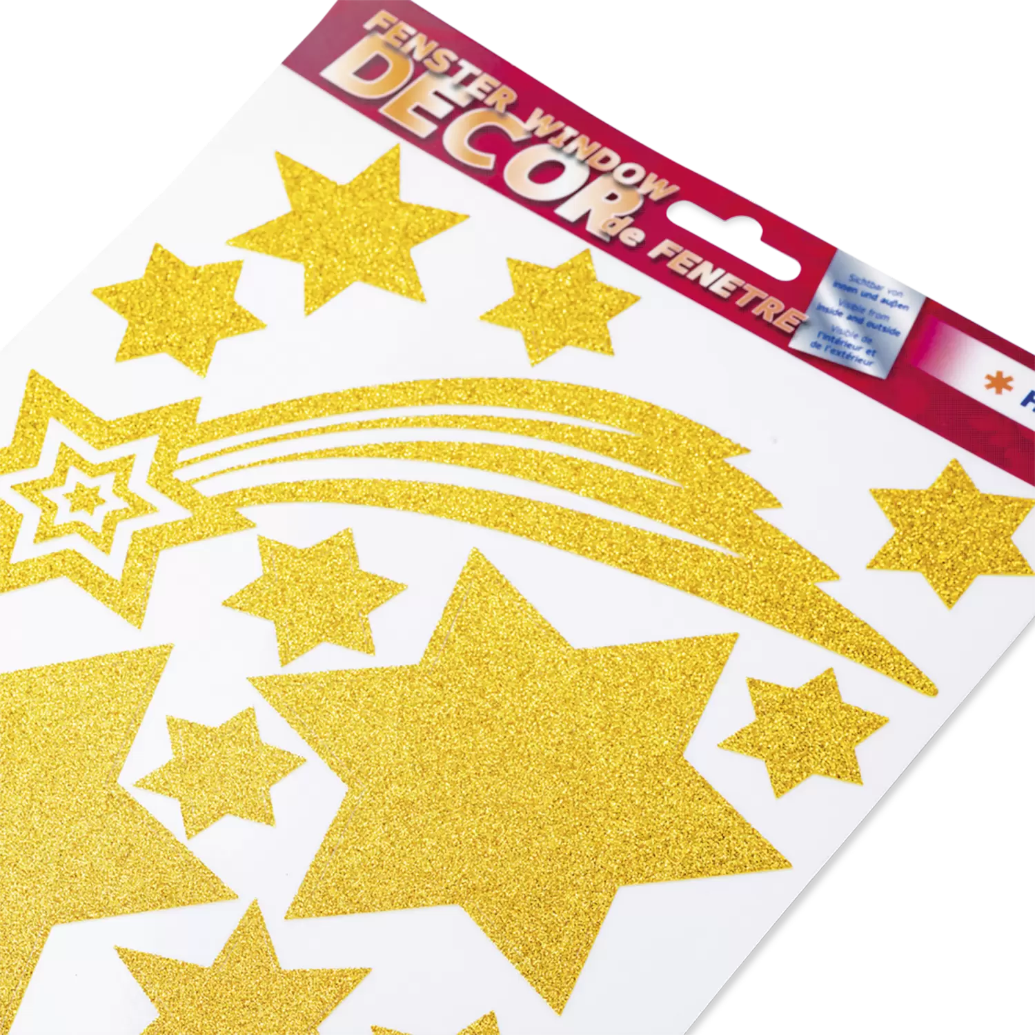 Les images de fenêtre Étoiles or sont la décoration parfaite pour la saison froide. Avec le film scintillant doré, elles confèrent à chaque pièce une atmosphère chaleureuse et festive. Le film autocollant permet de coller et de recoller plusieurs fois les images de fenêtre et de découvrir ainsi sans cesse de nouvelles possibilités de décoration. Le film doré reflète la lumière et crée ainsi un effet brillant qui rappelle la neige étincelante ou les décorations de Noël scintillantes. Une superbe décoration de fenêtre qui met en valeur la pièce et qui est également visible de l'extérieur. En plus des fenêtres, ces dessins conviennent également à d'autres surfaces lisses comme les miroirs ou les carrelages. Décorez votre intérieur selon vos envies et faites entrer l'ambiance festive de l'hiver dans chaque pièce.