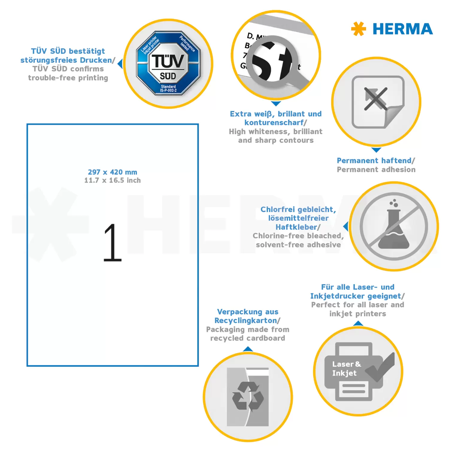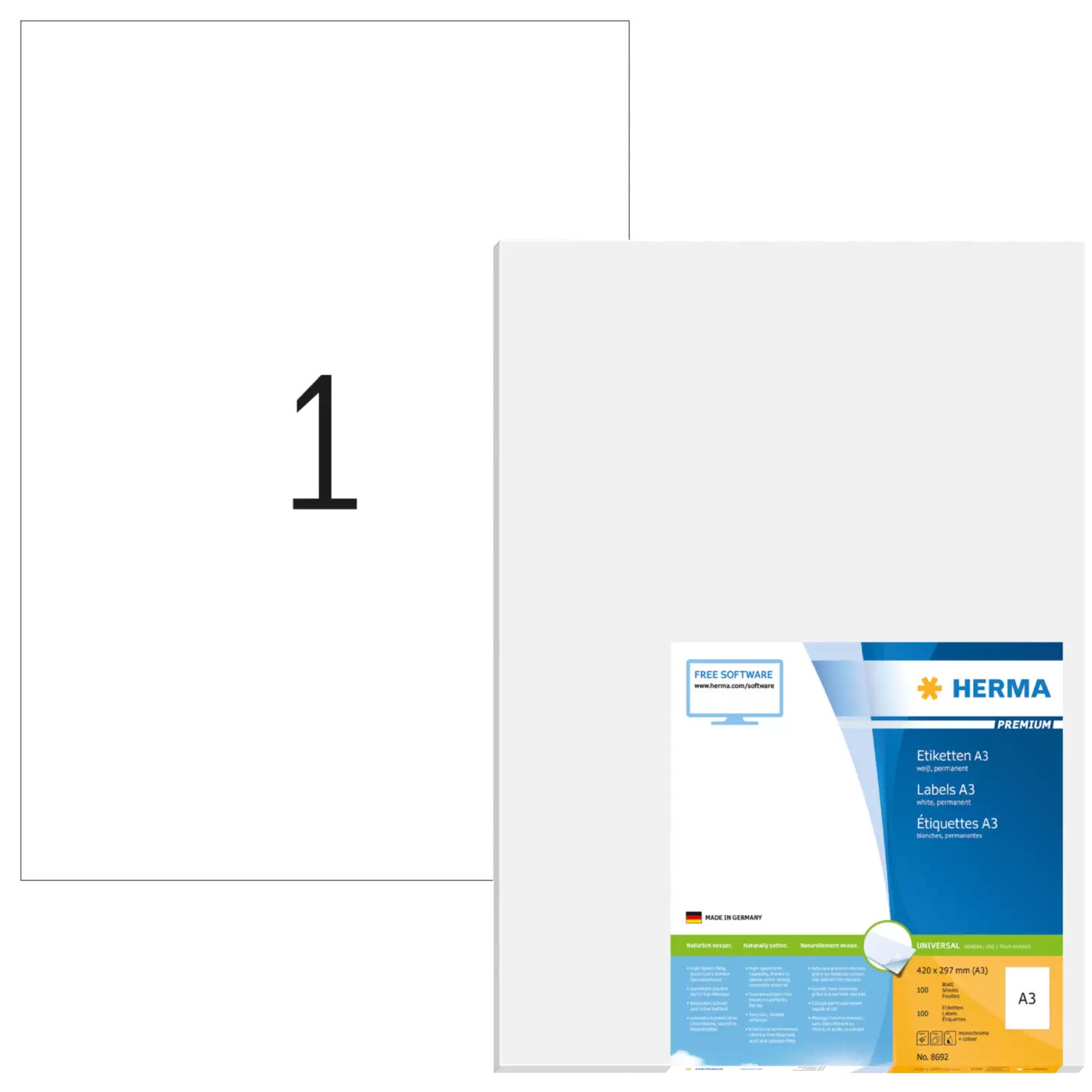 Étiquettes PREMIUM A3, 297 x 420 mm, blanches, adhérence permanente