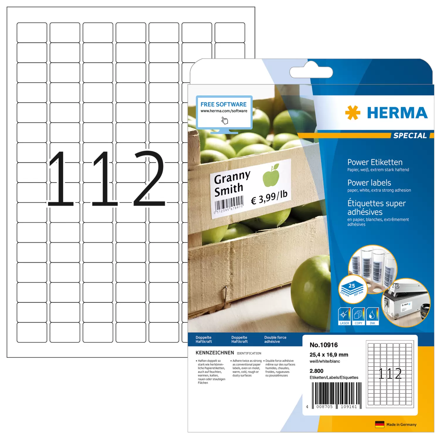 Étiquettes super adhésives, A4, 25,4 x 16,9 mm, blanches, en papier