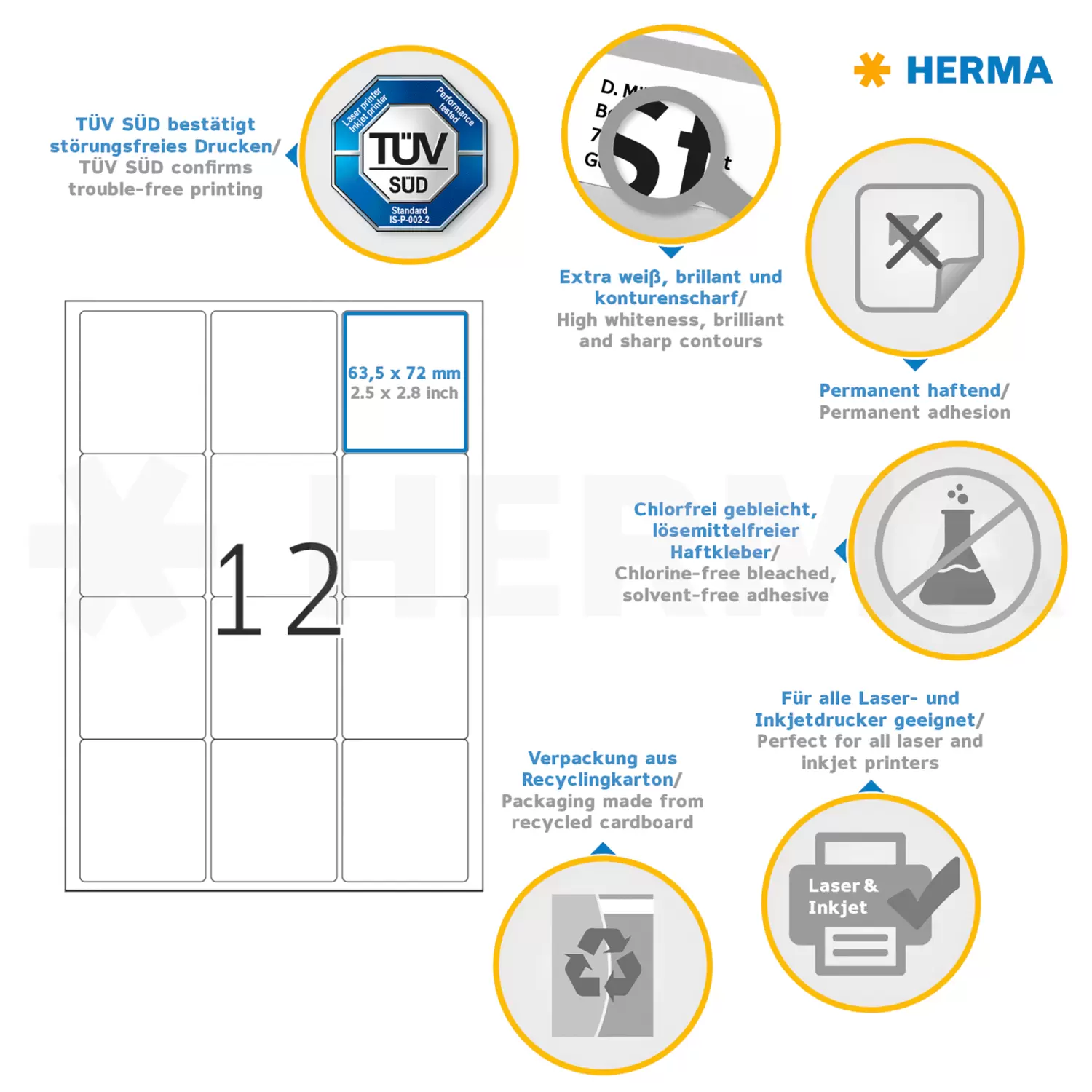 Étiquettes PREMIUM, A4, 63,5 x 72 mm, blanches, adhérence permanente