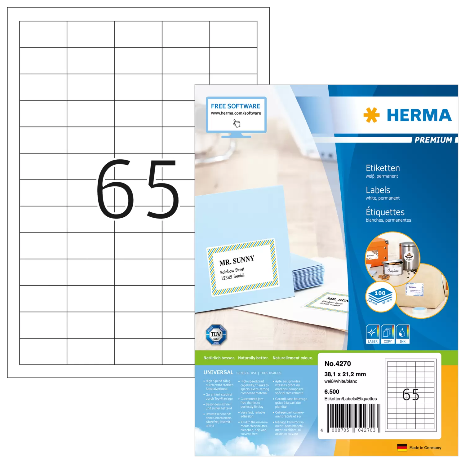 Contenu: 6500 étiquettes / 100 feuilles