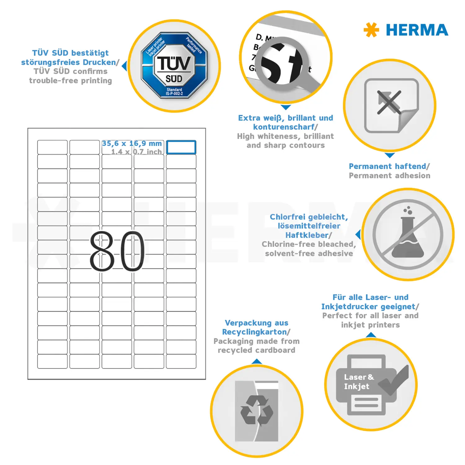 Étiquettes PREMIUM, A4, 35,6 x 16,9 mm, blanches, adhérence permanente