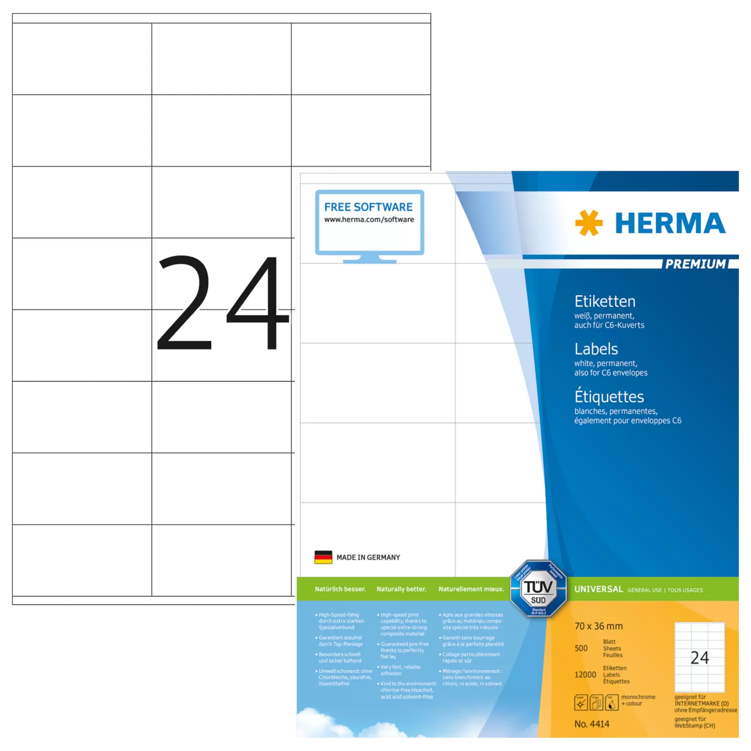 Contenu: 12000 étiquettes / 500 feuilles