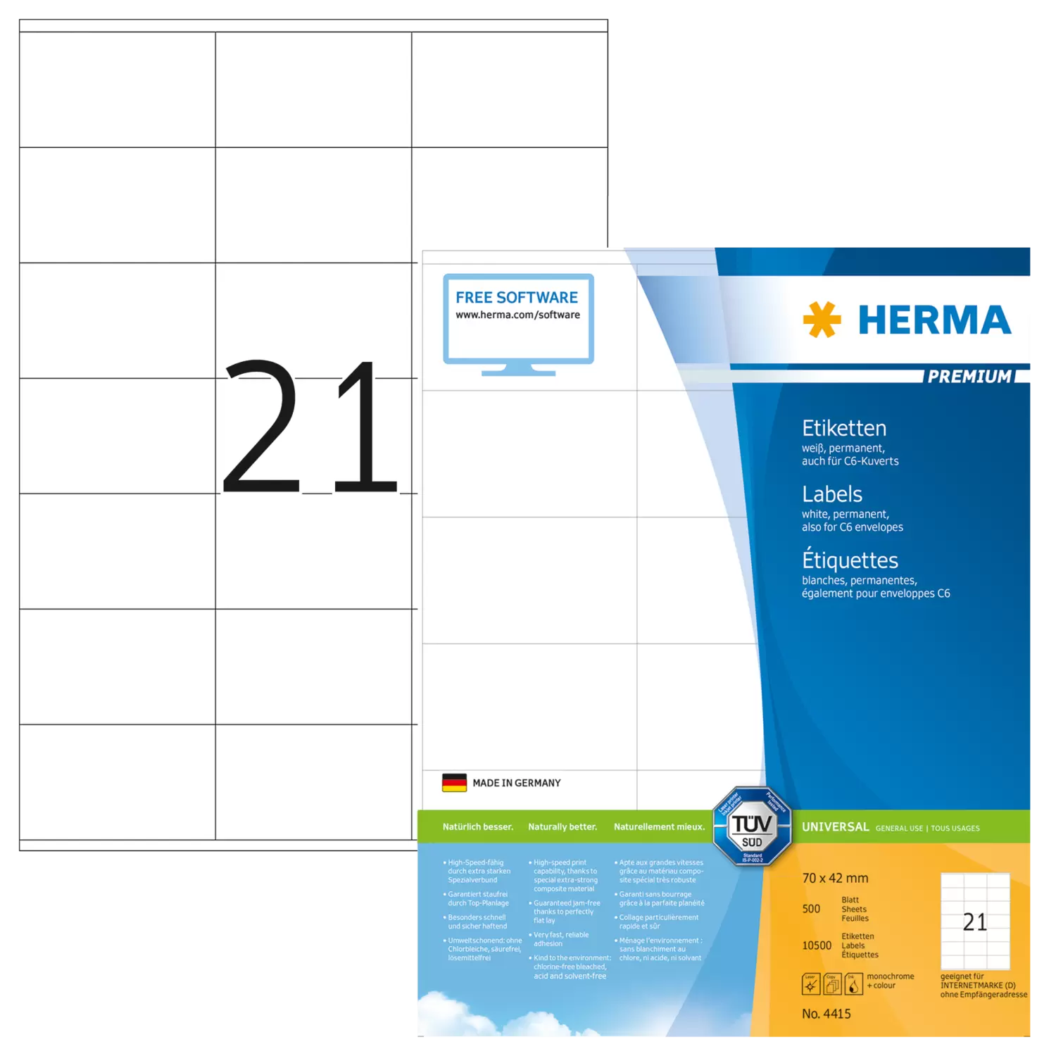 Contenu: 10500 étiquettes / 500 feuilles