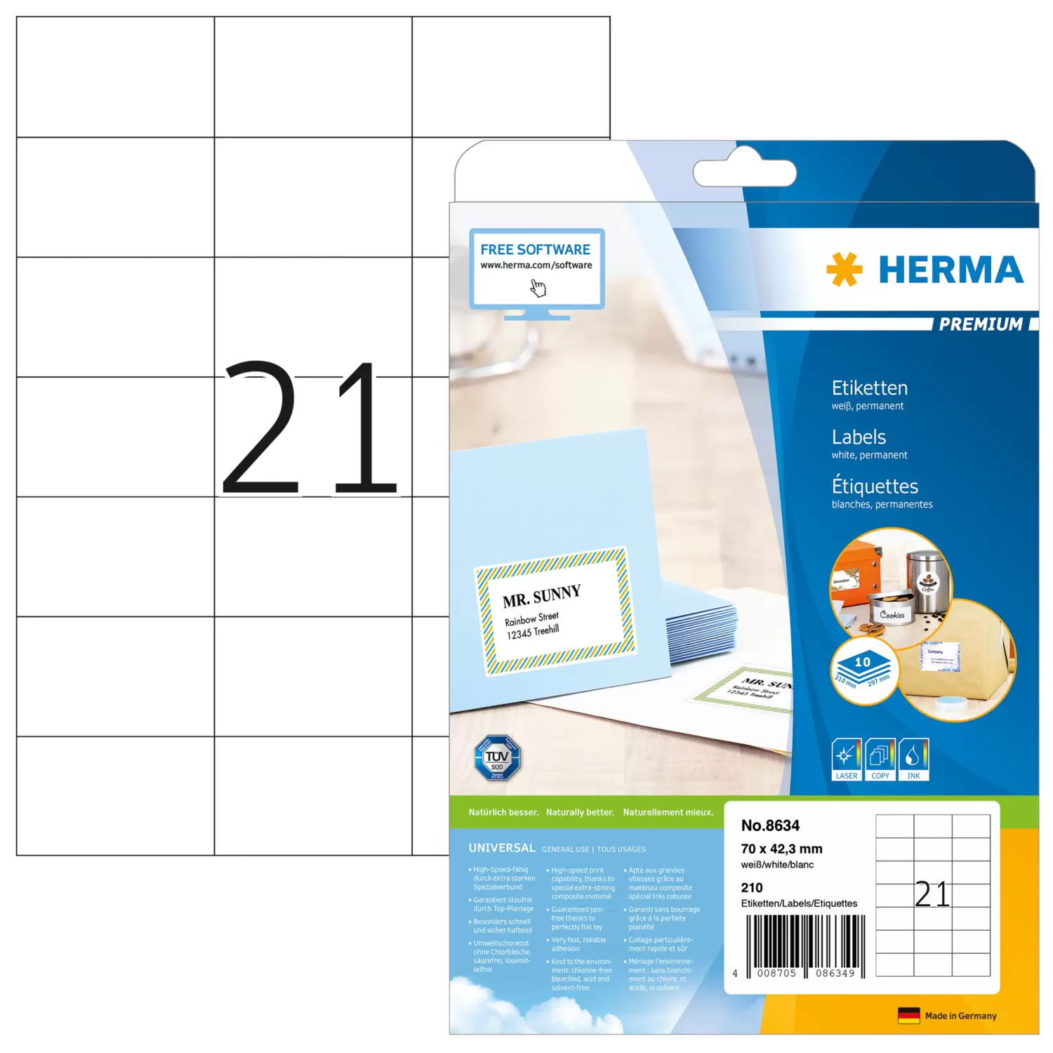 Étiquettes PREMIUM, A4, 70 x 42,3 mm, blanches, adhérence permanente