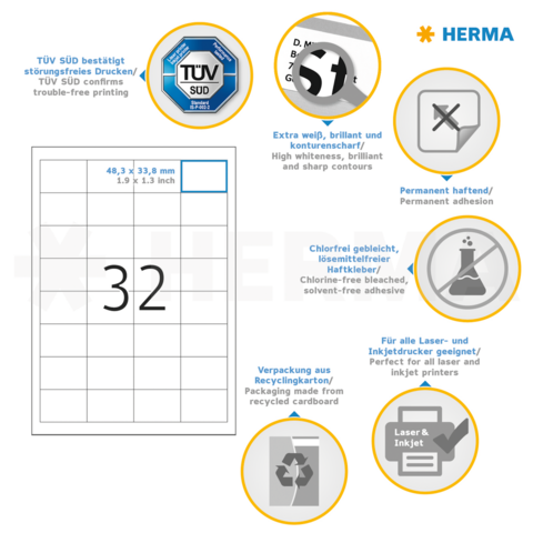 Étiquettes PREMIUM, A4, 48,3 x 33,8 mm, blanches, adhérence permanente