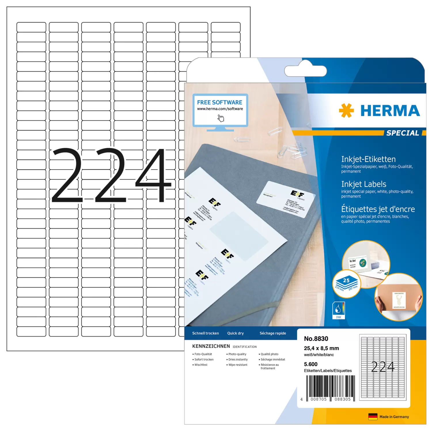 Étiquettes jet d'encre, A4, 25,4 x 8,5 mm, blanches, adhérence permanente
