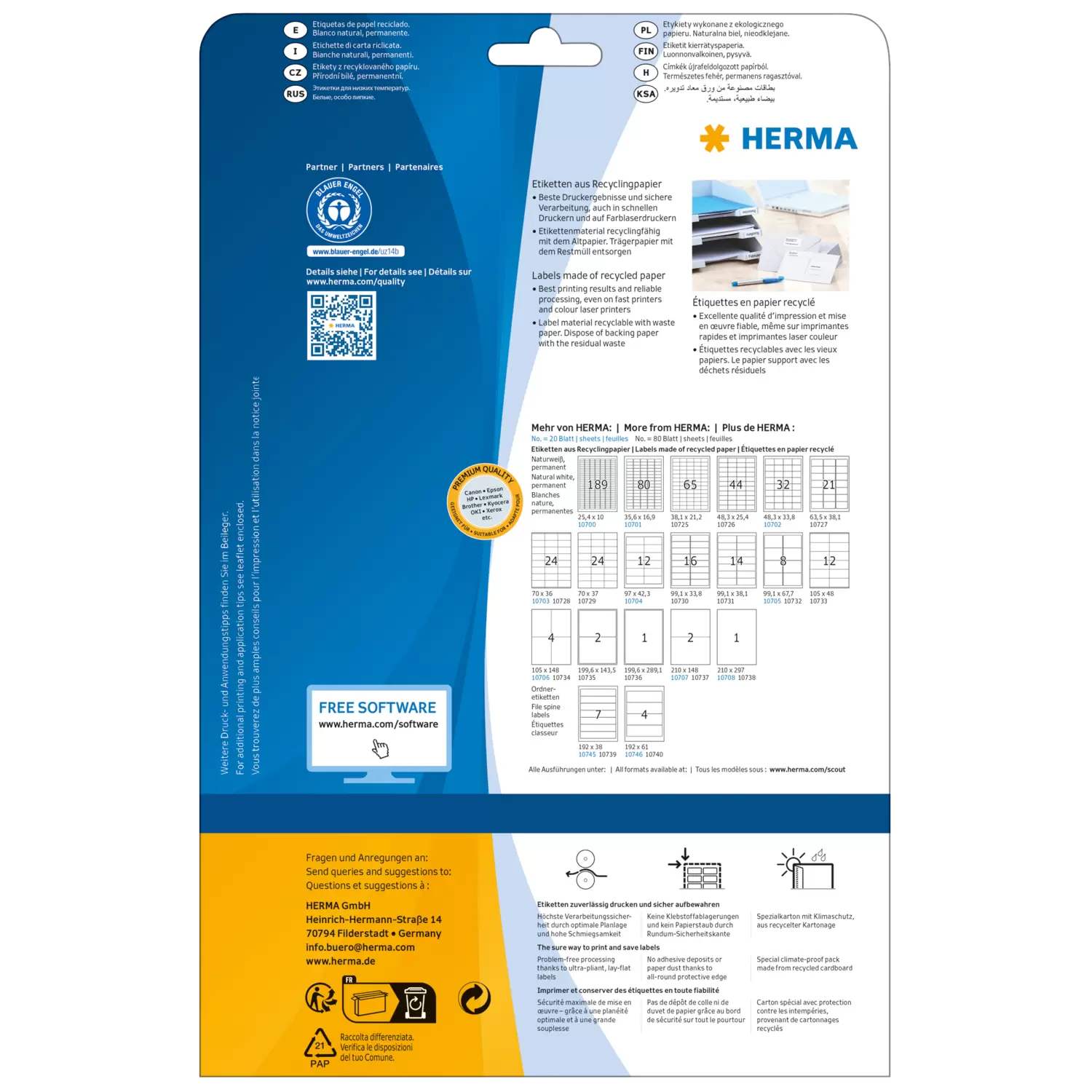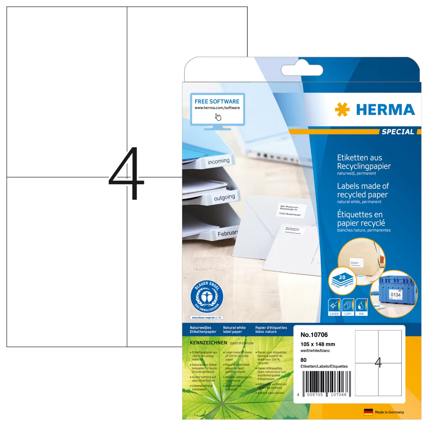 Étiquettes en papier recyclable, A4, 105 x 148 mm, blanches, adhérence permanente