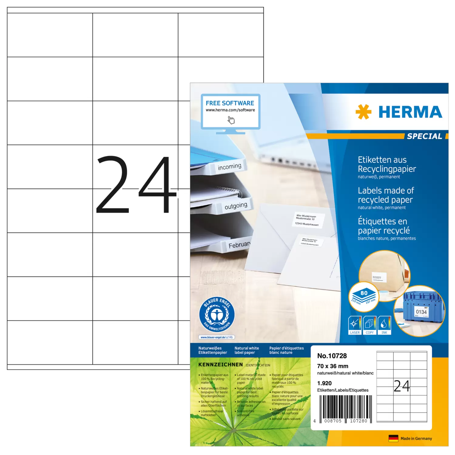 Étiquettes en papier recyclable, A4, 70 x 36 mm, blanches, adhérence permanente