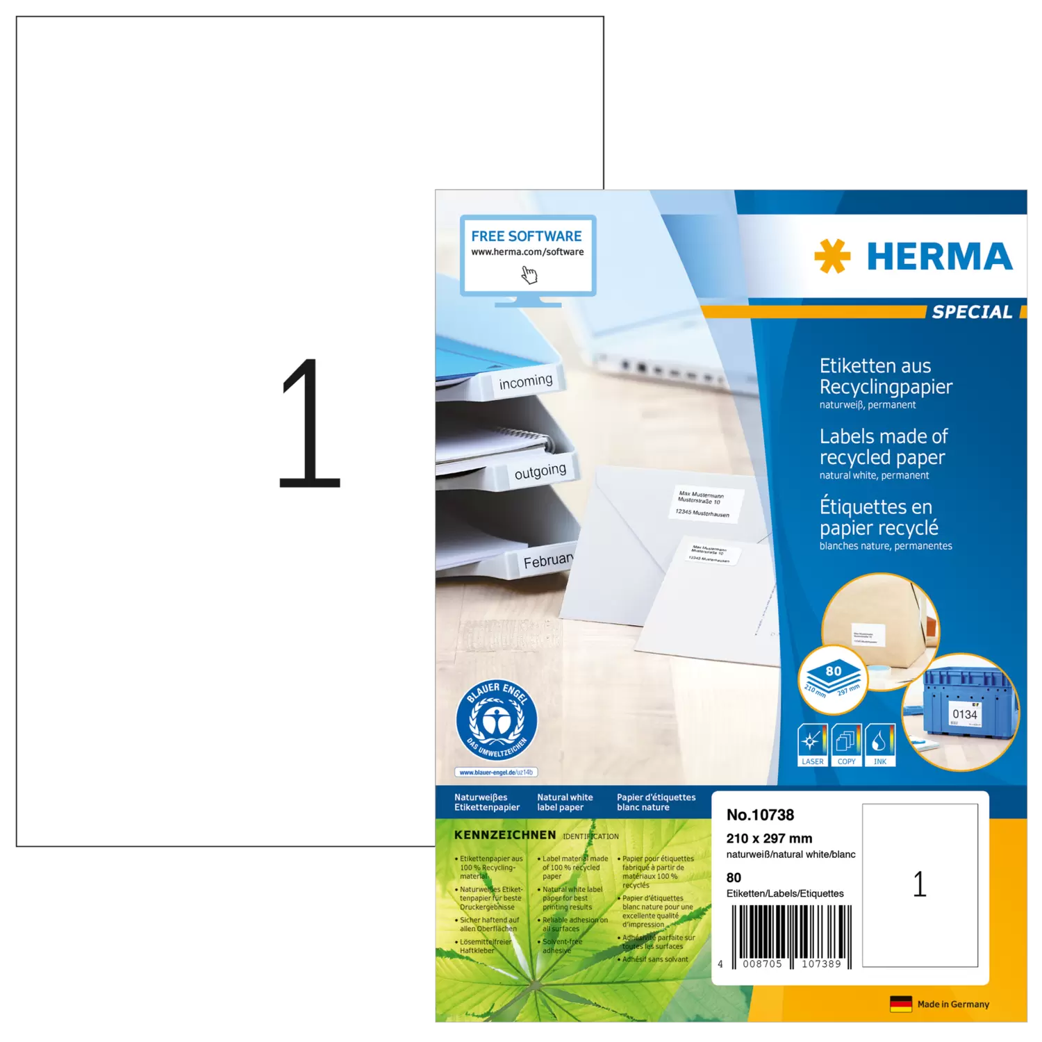 Étiquettes en papier recyclable, A4, 210 x 297 mm, blanches, adhérence permanente