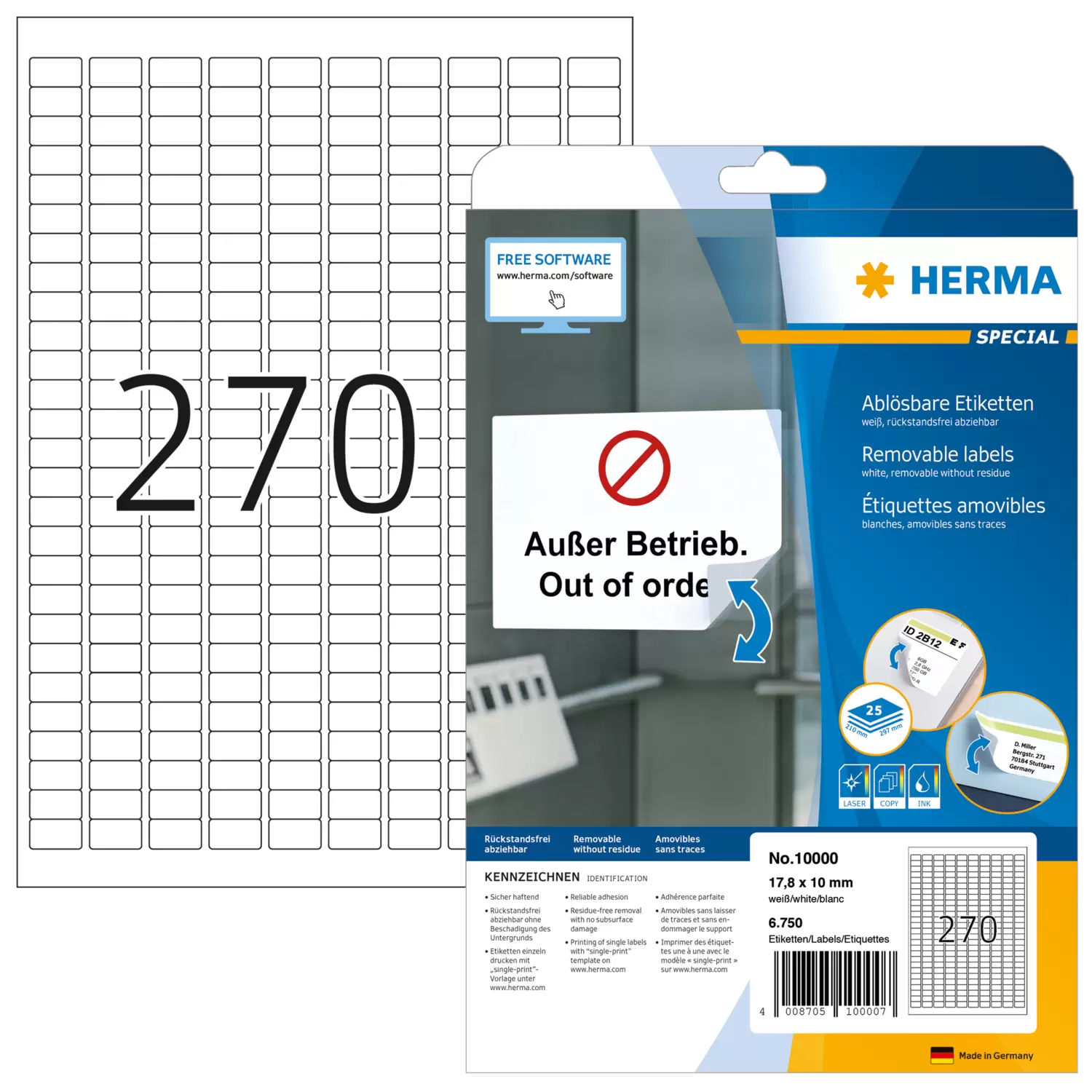 Les étiquettes détachables sont adaptées aux imprimantes à jet d’encre et laser ainsi qu’aux photocopieuses. Avec d’excellents résultats d’impression en noir et en couleur.