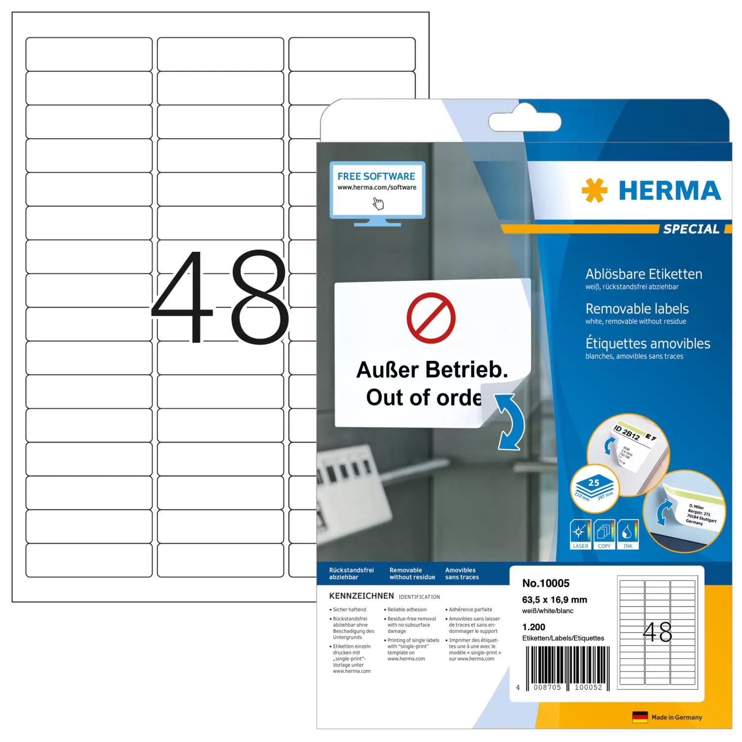 Bandes de marquage amovibles A4, 63,5 x 16,9 mm, blanches