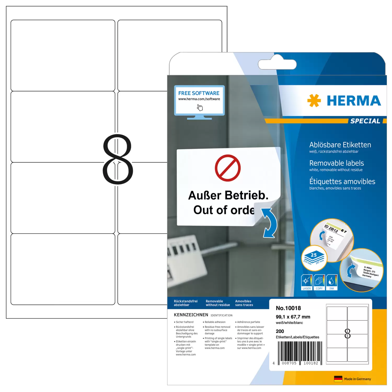 Étiquettes d'adresse amovibles, A4, 99,1 x 67,7 mm, blanches, opaques