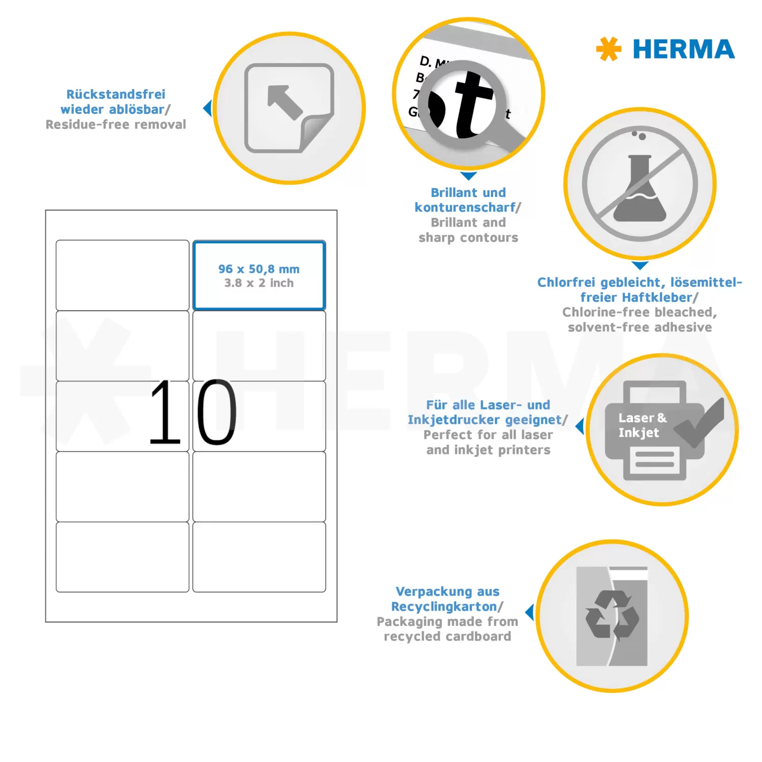 Étiquettes d'adresse amovibles, A4, 96 x 50,8 mm, blanches