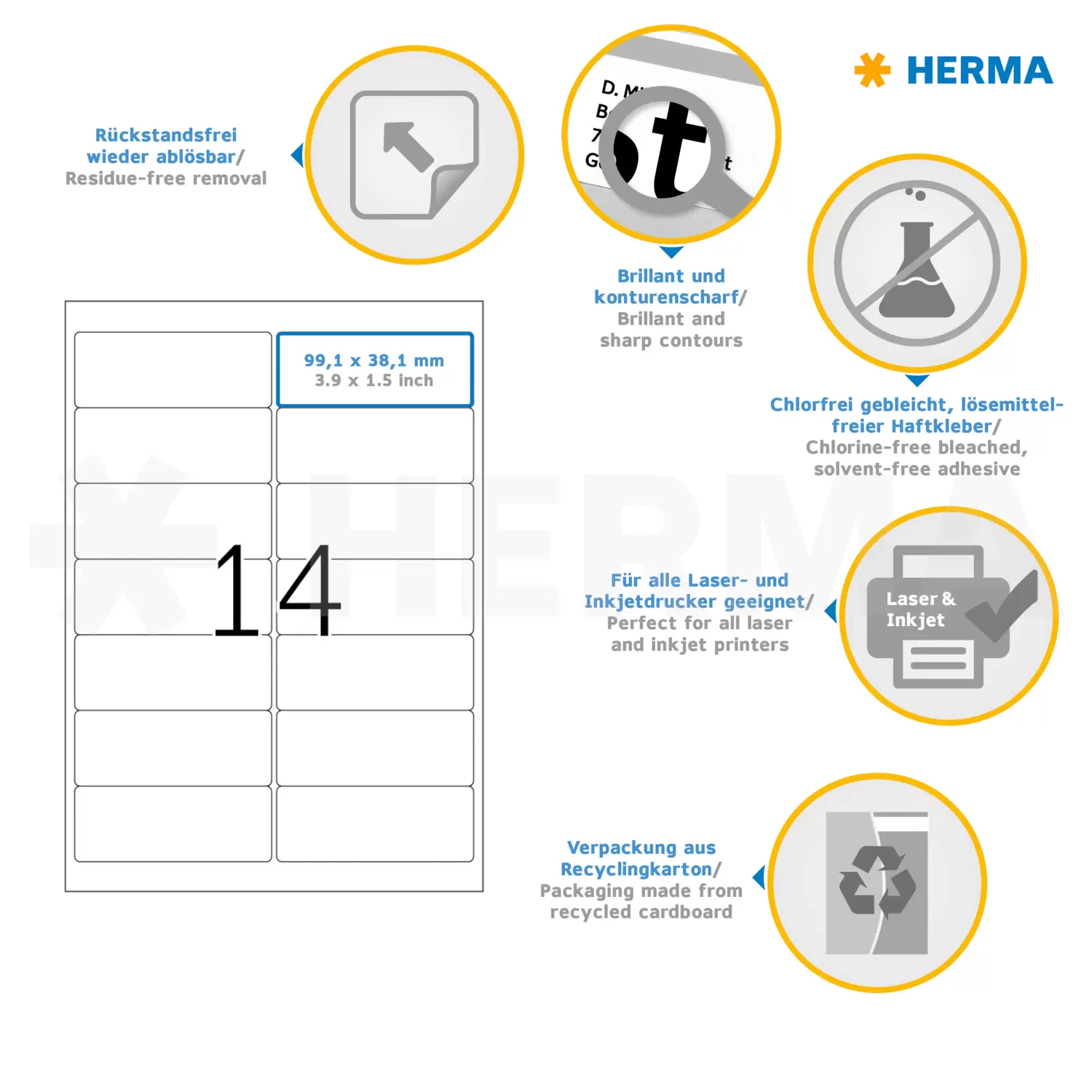 Étiquettes d'adresse amovibles, A4, 99,1 x 38,1 mm, blanches