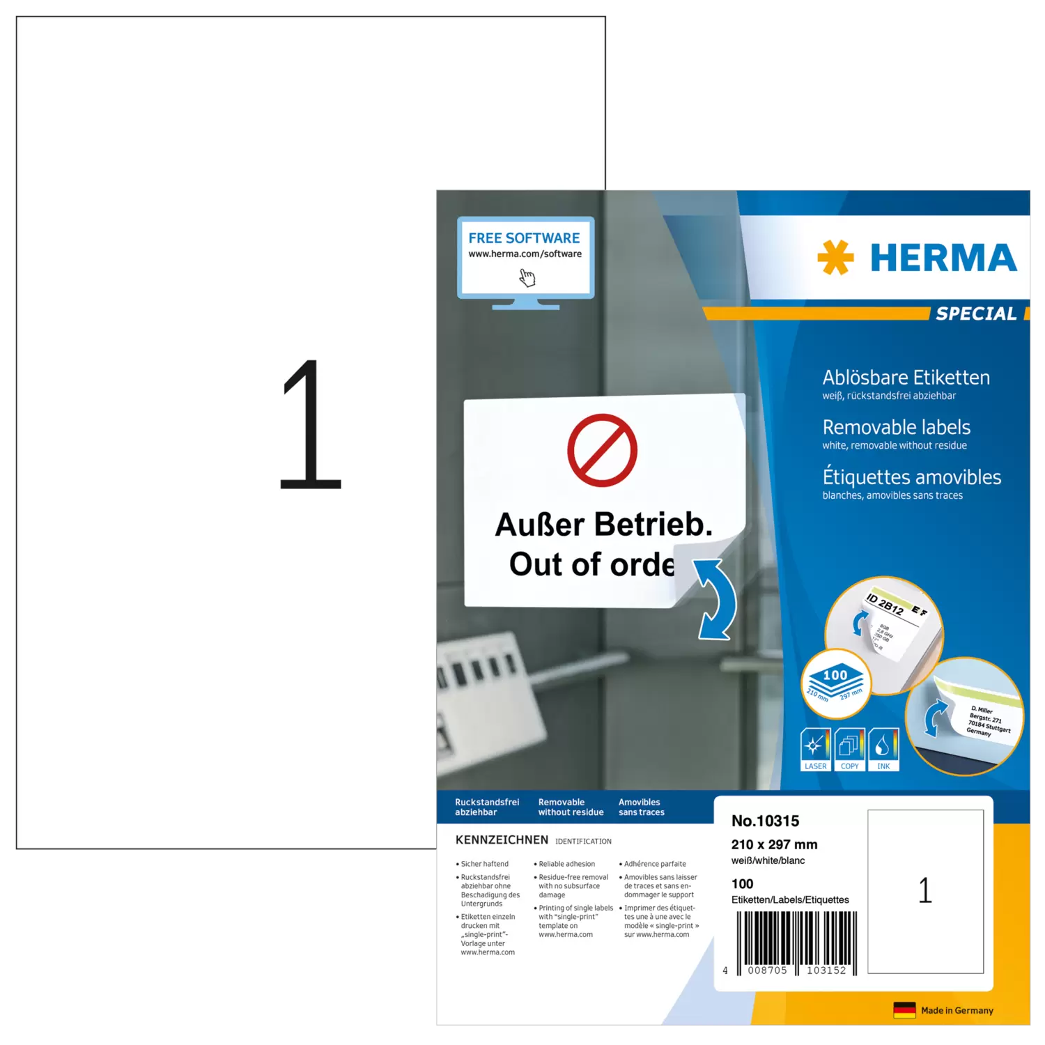 Étiquettes amovibles, A4, 210 x 297 mm, blanches 100 pcs