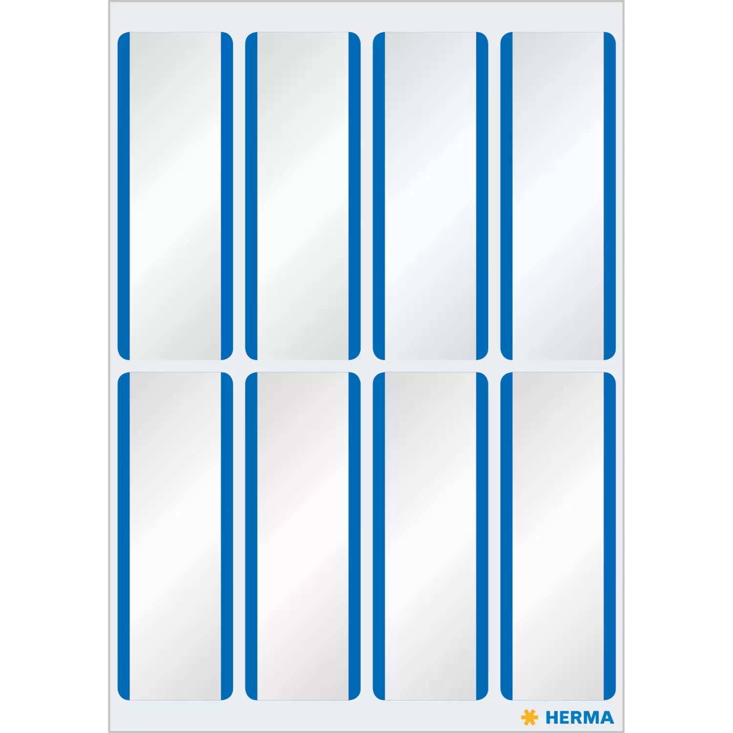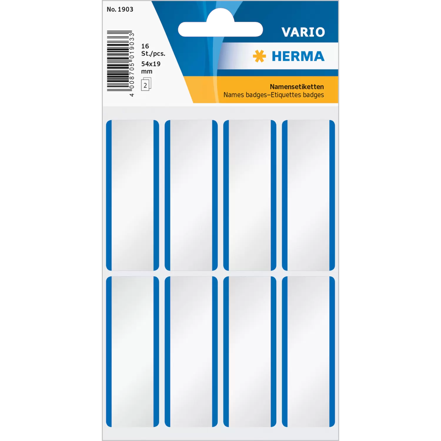 Étiquettes-badges 54x19 mm blanc/rayure bleue, amovible, en soie-acétate, 16 pcs