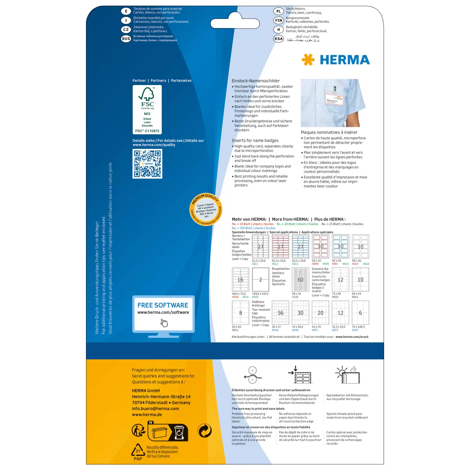 - À insérer dans toutes les plaques nominatives en plastique courantes avec agrafe ou aimant, détachables proprement grâ ce à la microperforation
