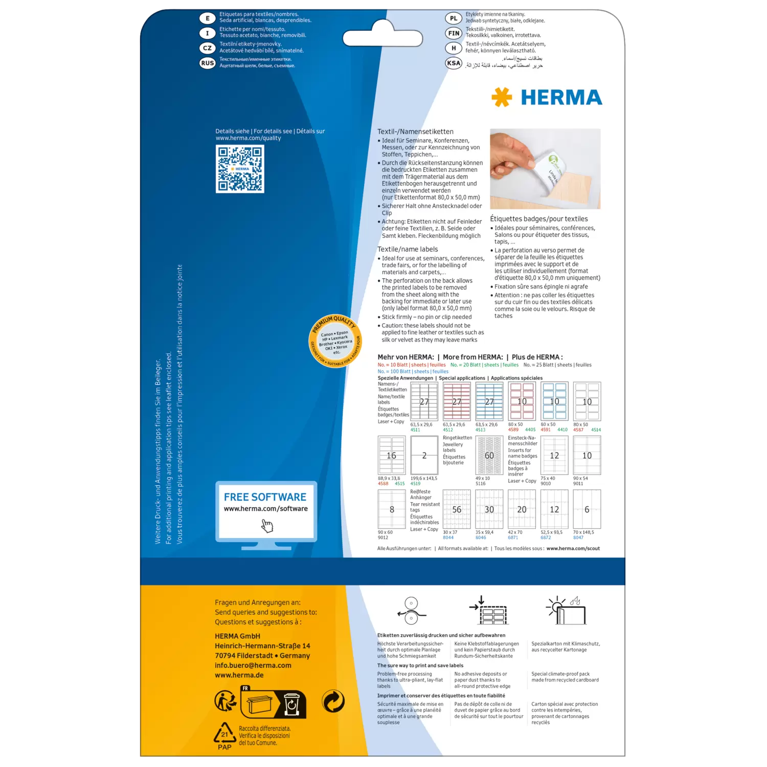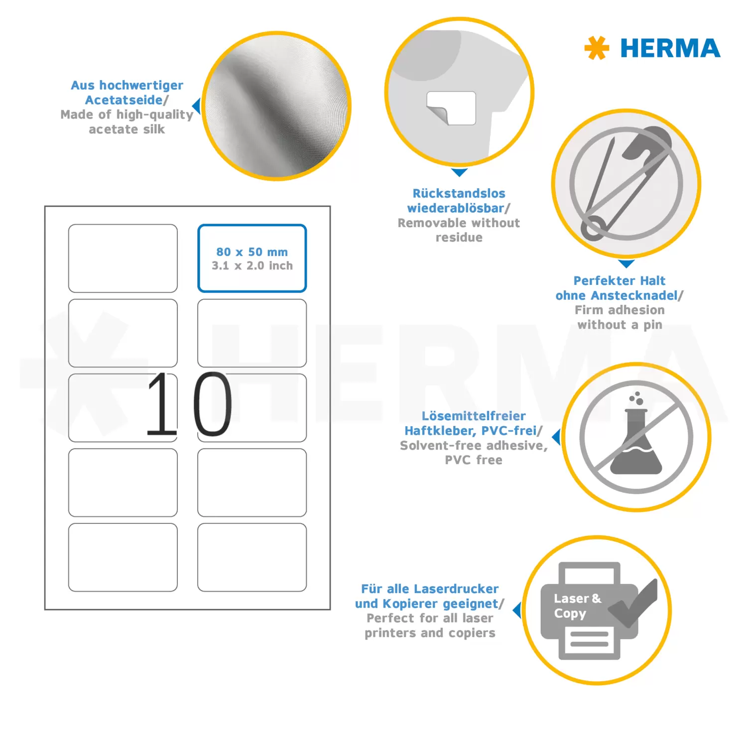 - Idéales comme plaques nominatives pour séminaires, conférences, salons (ou le marquage d'étoffes, de tapis et de matelas)