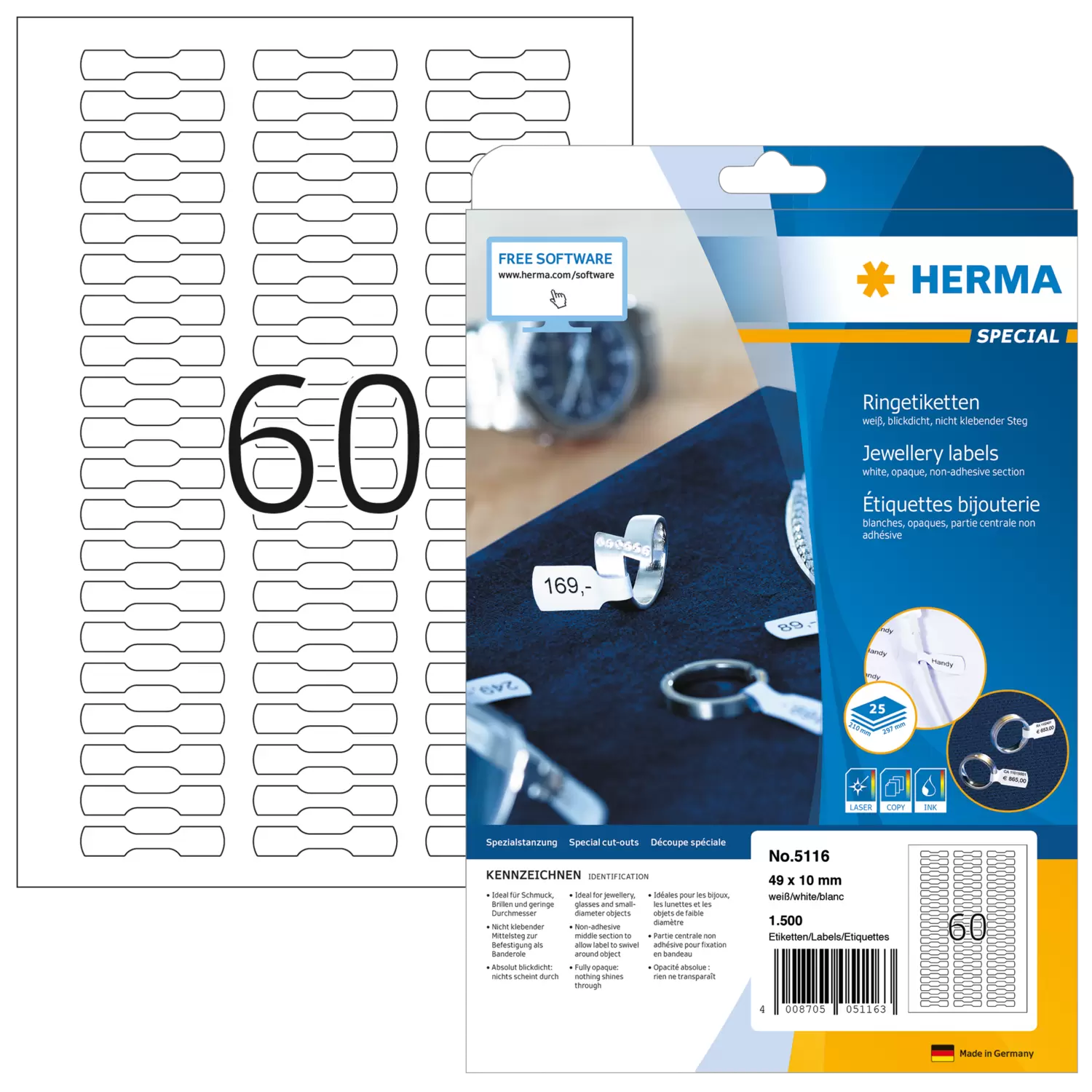 Étiquettes bijouterie, A4, 49 x 10 mm, blanches, opaques, fortement adhérentes