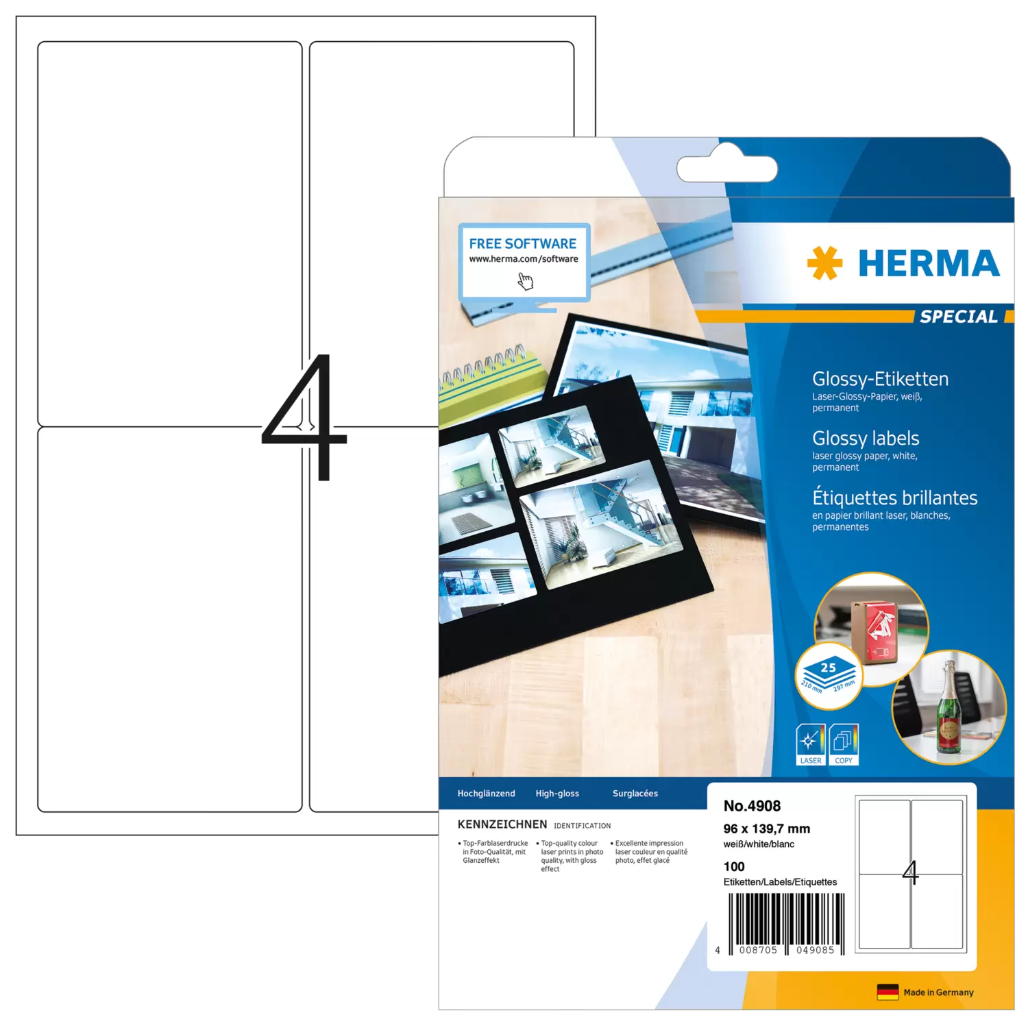 Étiquettes surglacées, A4, 96 x 139,7 mm, blanches, adhérence permanente