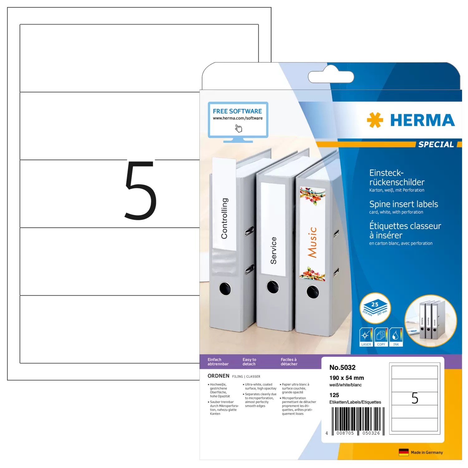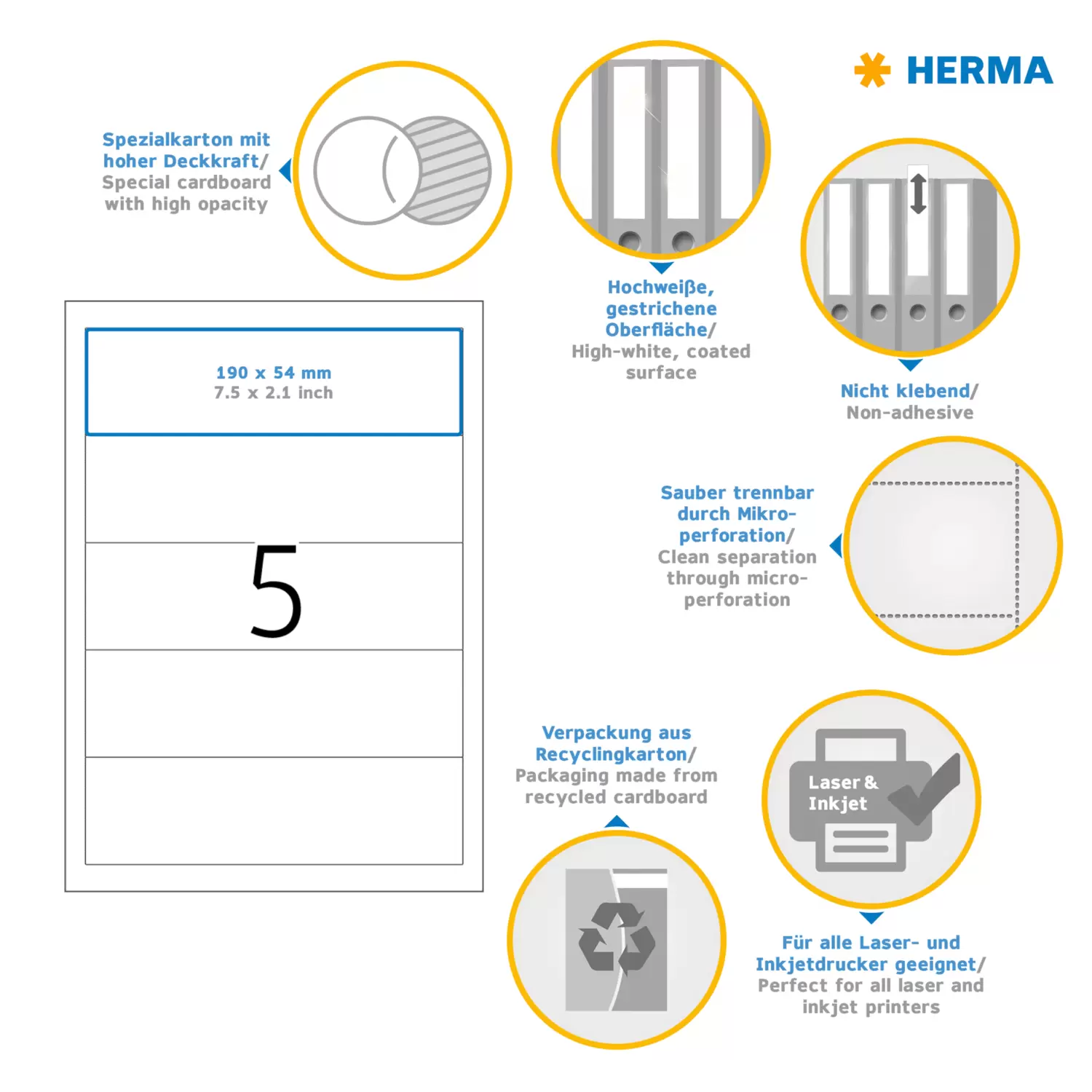 Étiquettes classeurs à insérer, A4, 190 x 54 mm, blanches, en carton, non adhésives