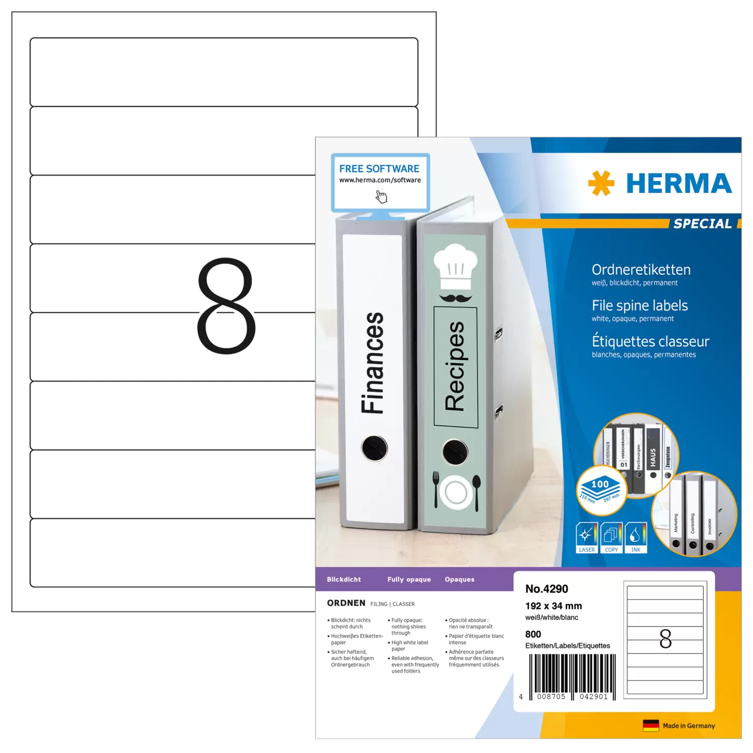 Étiquettes classeur A4, 192 x 34 mm, blanches, opaques, adhérence permanente, pour classeurs étroits