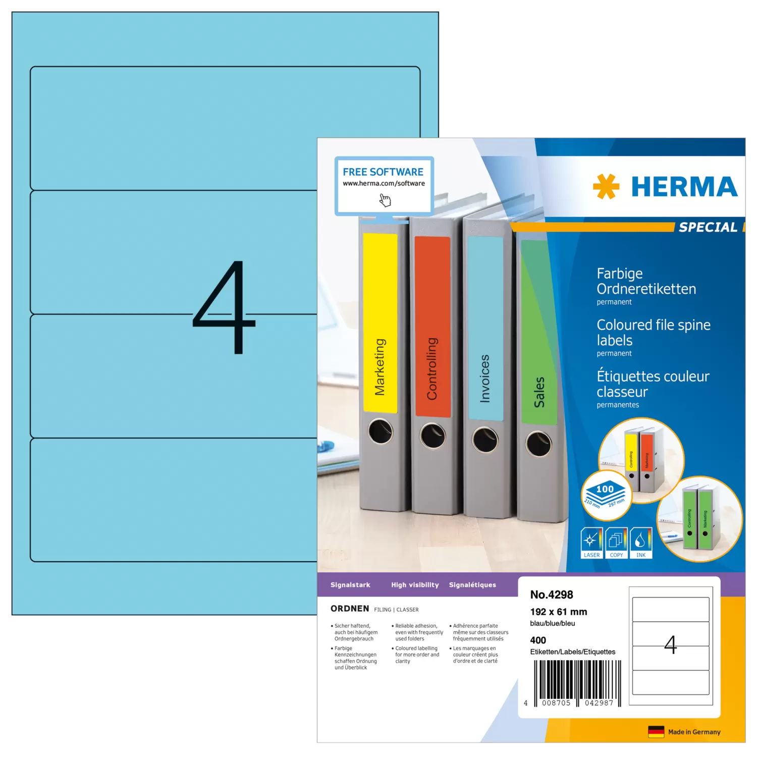 Étiquettes classeur A4, 192 x 61 mm, bleues, adhérence permanente, pour classeurs larges (c